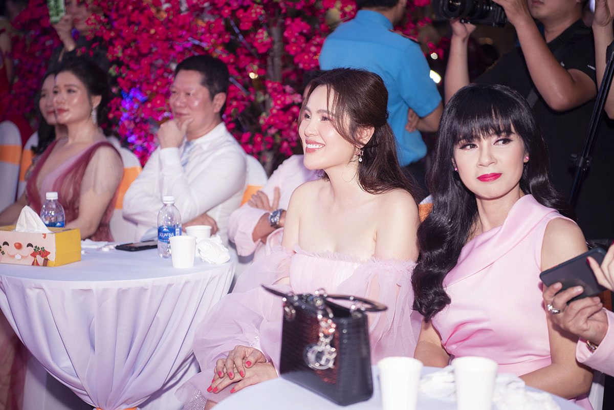 Vì đây là lần đánh dấu sự trở lại với công chúng của Hoa hậu Lê Âu Ngân Anh nên người đẹp đã chọn cho mình bộ váy tím pastel phối cùng giày nơ ton sur ton đang là màu trending của thời trang 2020. Trong khi đó, Hoa hậu Phương Lê lại hóa thành công chúa với chiếc váy hồng đuôi dài quét chân.