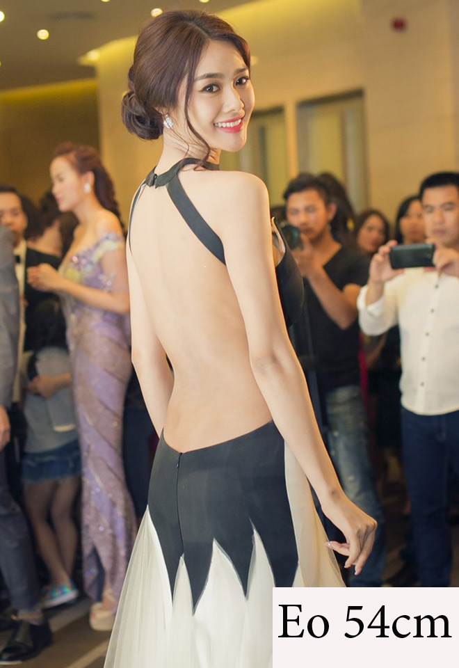 Hoa hậu Hương Giang cũng sở hữu vòng eo đáng ngưỡng mộ: 56cm. Vì trông quá thon thả, cô vướng phải nghi vấn cắt xương sườn để giảm eo những ngày qua.