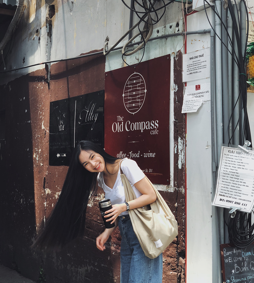 Phong cách trẻ trung nhưng vẫn là tóc đen dài nhé. Người đẹp chia sẻ rất nhiều người bạn trêu rằng trông cô chẳng có gì ngoài tóc. Thế là nhí nhảnh khoe tóc thế này đây.