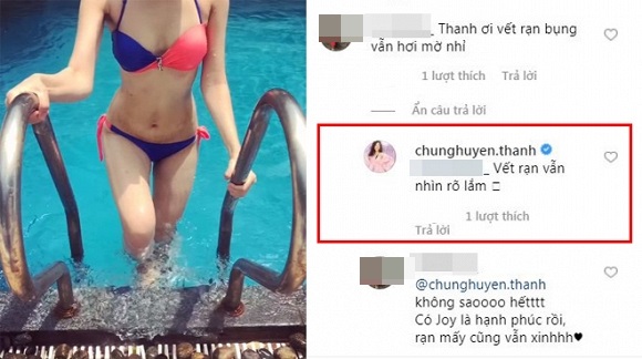 Nhiều người nhanh chóng nhận ra chi tiết này: “Thanh ơi vết rạn bụng vẫn hơi mờ nhỉ.” Chúng Huyền Thanh cũng không ngại chia sẻ: “Vết rạn vẫn nhìn rõ lắm”.