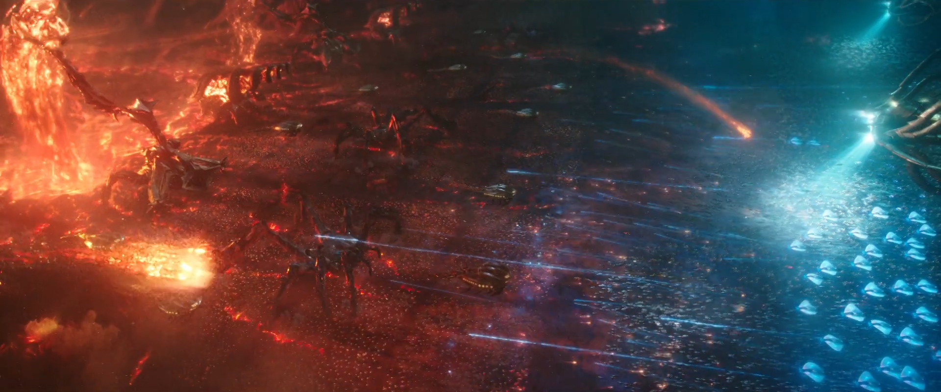 Cùng phục vụ cho âm mưu thôn tính của Orm chính là đội quân thủy cung của Atlantis, với những chiến binh cưỡi cá mập và cá ngựa ngoại cỡ. Chưa hết, đội quân này cũng bao gồm nhiều loài thủy quái với thân hình cực lớn như cua, cá thân giáp khổng lồ. Đối mặt với họ, đội quân màu xanh (nhiều khả năng là phe Aquaman) có lực lượng mỏng hơn, nhưng cũng phản kháng rất dữ dội với các loại súng, tia năng lượng.