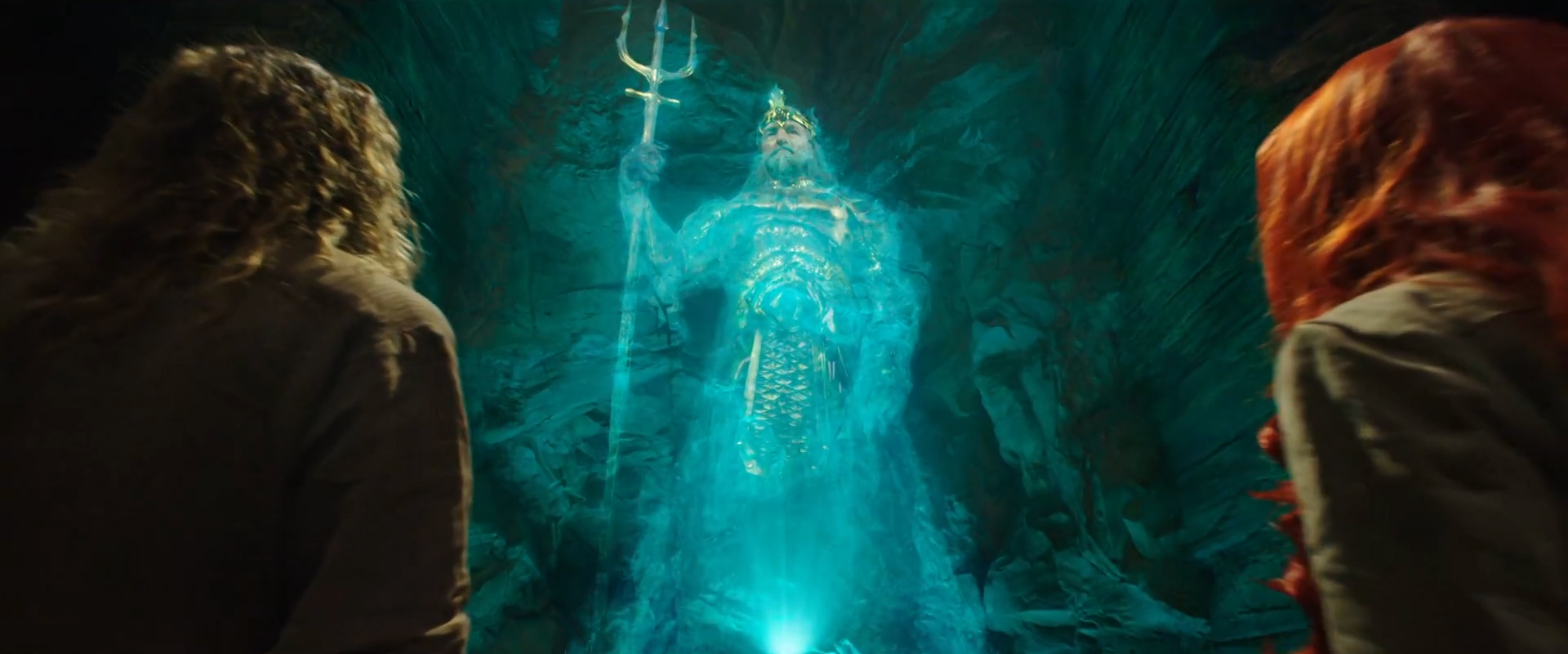 Trailer cũng bao gồm một số hình ảnh của vua Atlan thời Atlantis còn là đế chế trên mặt đất. Tuy nhiên, không biết vì lý do gì mà Atlan đã sử dụng quyền năng của đinh ba để nhấn chìm cả hòn đảo xuống đáy đại dương. Kể từ đó, thần dân của ông trở thành tộc người sống dưới nước.