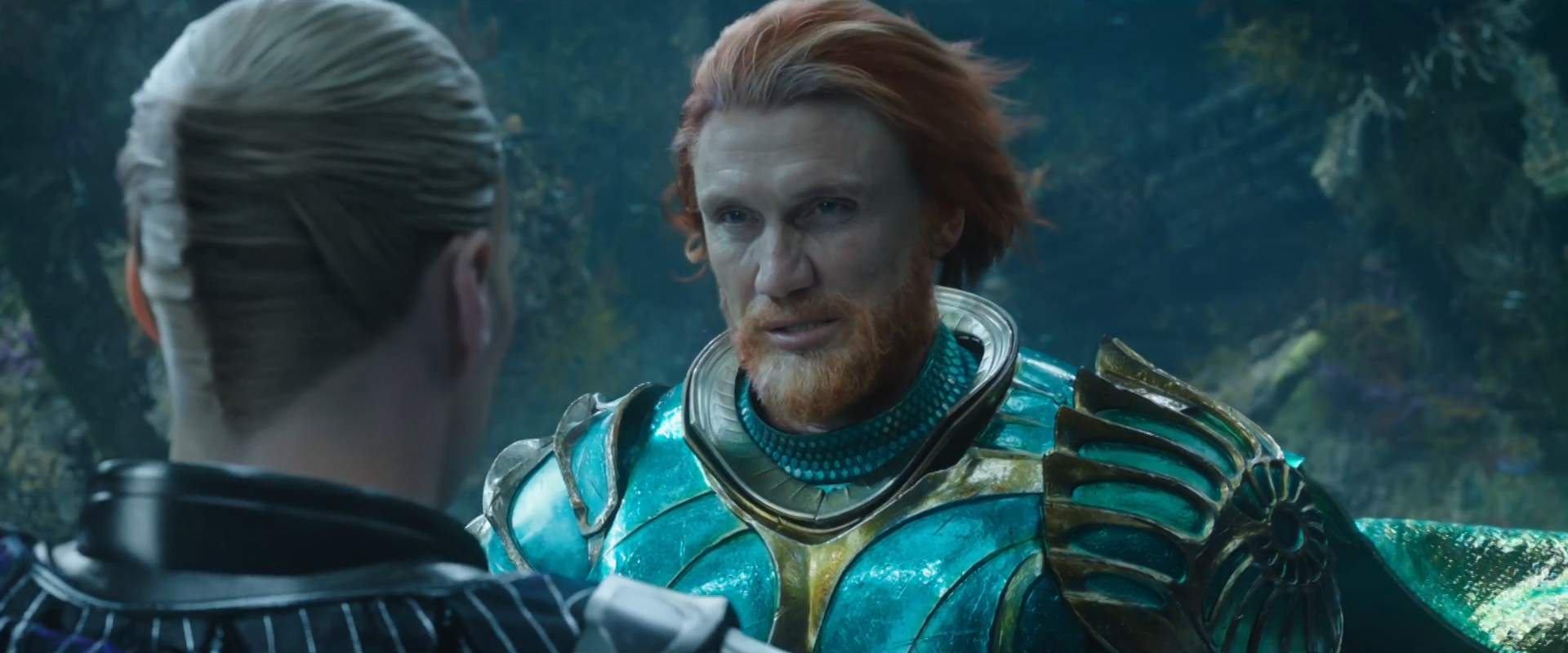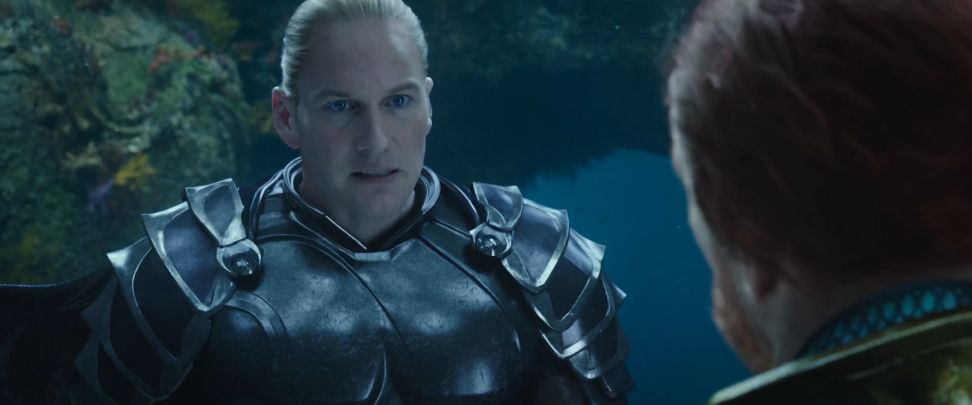 Trailer cũng cho người xem thoáng thấy hình ảnh căn phòng ngai cực kỳ rộng, toàn một màu trắng lung linh của Atlantis. Tại đây, Orm ngự trên ngai vàng, bên cạnh là nàng Mera dù cô không hề ủng hộ hay tin tưởng hắn. Trong trailer, ta có thể thấy một nhóm lính đang giải Aquaman (trong trang phục vàng và xanh) tới trước ngai vàng, còn Orm thì đang tiến xuống đối diện với anh trai mình.