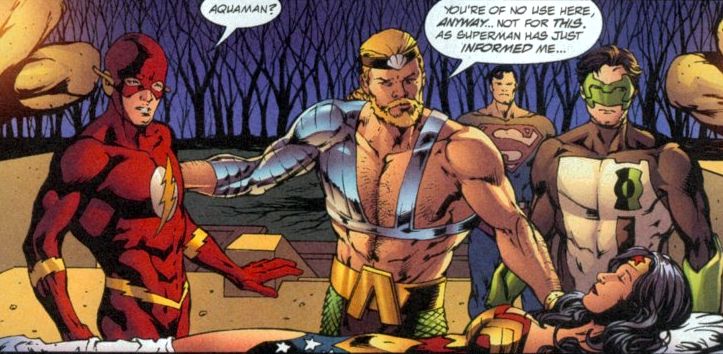 Trong đầu truyện “Flashpoint” vô cùng nổi tiếng được hãng DC phát hành năm 2011, người hùng trẻ Flash chạy ngược thời gian và làm thay đổi quá khứ. Trong thế giới mới này, Aquaman gặp gỡ và phải lòng Wonder Woman, công chúa Amazon. Hai người đính hôn với nhau, tuy nhiên trong đám cưới của họ, một kẻ lạ mặt bất ngờ ám sát nữ hoàng Hippolyta, mẹ của Wonder Woman. Nữ chiến binh thấy vậy nổi giận, tuyên chiến với Aquaman cùng dân tộc Atlantean.