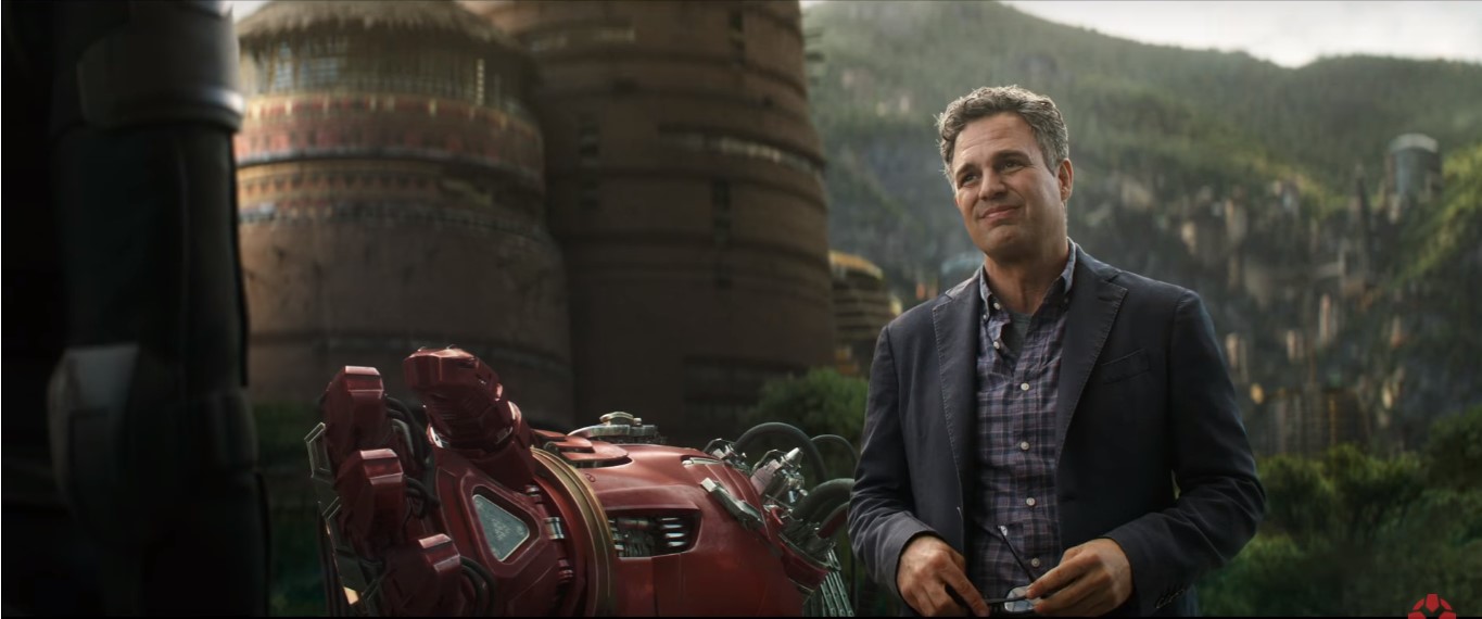 Tại cảnh ở Wakanda Hulk đang đứng cạnh một cánh tay của bộ Hulk Buster, và ở cảnh sau, chúng ta được chiêm ngưỡng toàn bộ bộ giáp mới này. Có vẻ lần này Hulk Buster là một bộ giáp khác hoàn toàn mới và không còn dùng để đánh nhau với Hulk nữa.