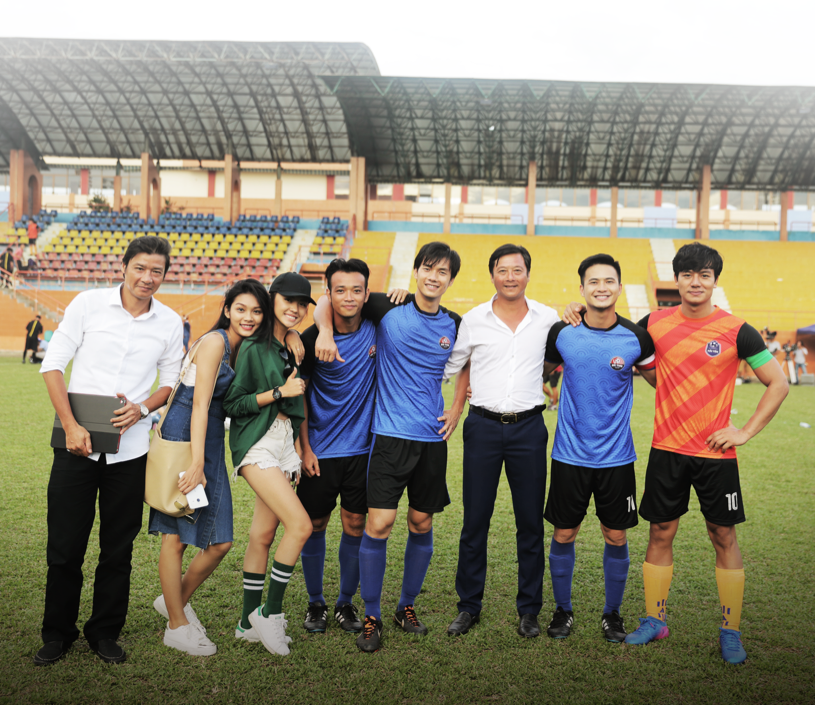 Cựu danh thủ Lê Huỳnh Đức cùng dàn diễn viên trong phim.