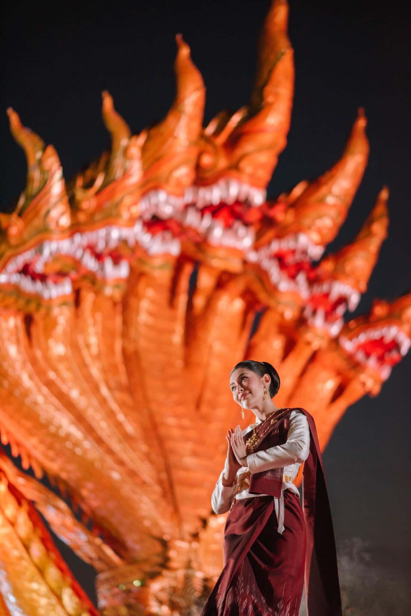 Tiếp đến vào khoảng tháng Mười, tại lễ hội sôi động và lớn nhất trong mùa Chay Phật giáo, lễ hội Quả cầu lửa Naga của tỉnh Nong Khai, Thái Lan, nữ diễn viên Ngược dòng thời gian để yêu anh tiếp tục nhận được vinh dự lớn lao khi múa chính tại sự kiện trước hàng ngàn du khách và người dân.