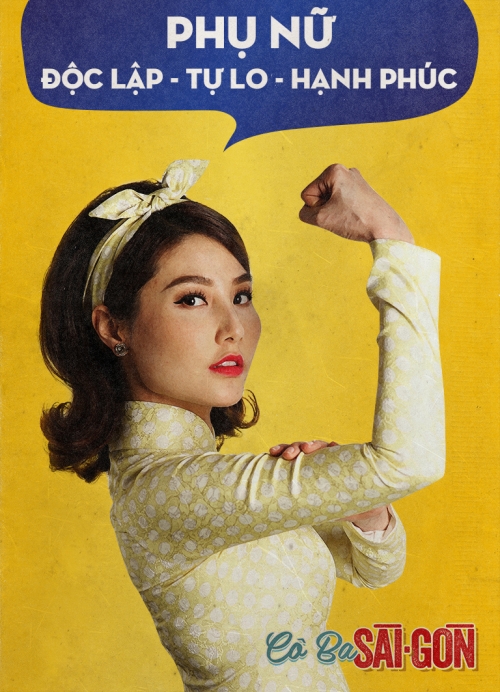 Trước khi công chiếu, Cô Ba Sài Gòn công bố bộ poster độc đáo, đầy mới mẻ, lấy ý tưởng từ bức họa nghệ thuật We Can Do It! (Rosie the Riveter) được thực hiện bởi họa sĩ J. Howard Miller vào năm 1942. Bức vẽ trở thành một trong những biểu tượng nổi bật nhất của Chiến tranh thế giới lần thứ 2, đồng thời mang đến ý nghĩa tôn vinh “nữ quyền”. Trong poster phim Cô Ba Sài Gòn, các cô gái ở nhiều thế hệ trong trang phục áo dài Việt nâng tay khỏe khoắn, cùng dòng chữ “Phụ nữ/ Độc lập - Tự do - Hạnh phúc”.