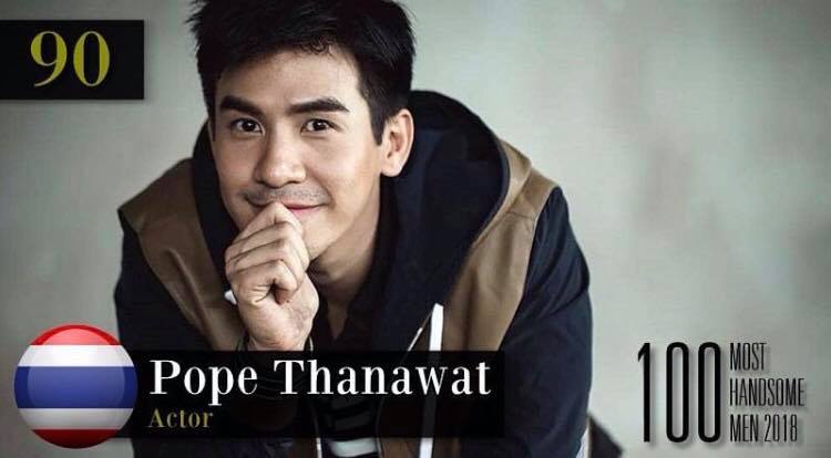 Một gương mặt diễn viên có mặt ở thứ hạng 90 trong danh scahs này là Pope Thanawat. Thời gian qua, Pope gây sốt với vai diễn Khun Pee trong bộ phim truyền hình Ngược dòng thời gian để yêu anh. Đó là lí do vì sao Pope nhanh chóng trở thành cái tên được săn đón nhiều nhất trong suốt thời gian phim phát sóng. Vốn là diễn viên lâu năm trong channel 3, nhưng phải đến Ngược dòng thời gian để yêu anh, Pope mới thực sự tạo nên một làn sóng dữ dội đến như vậy. Các fan đã yêu mến và bình chọn cho anh chàng để anh có mặt trong danh sách 100 gương mặt đẹp trai nhất.