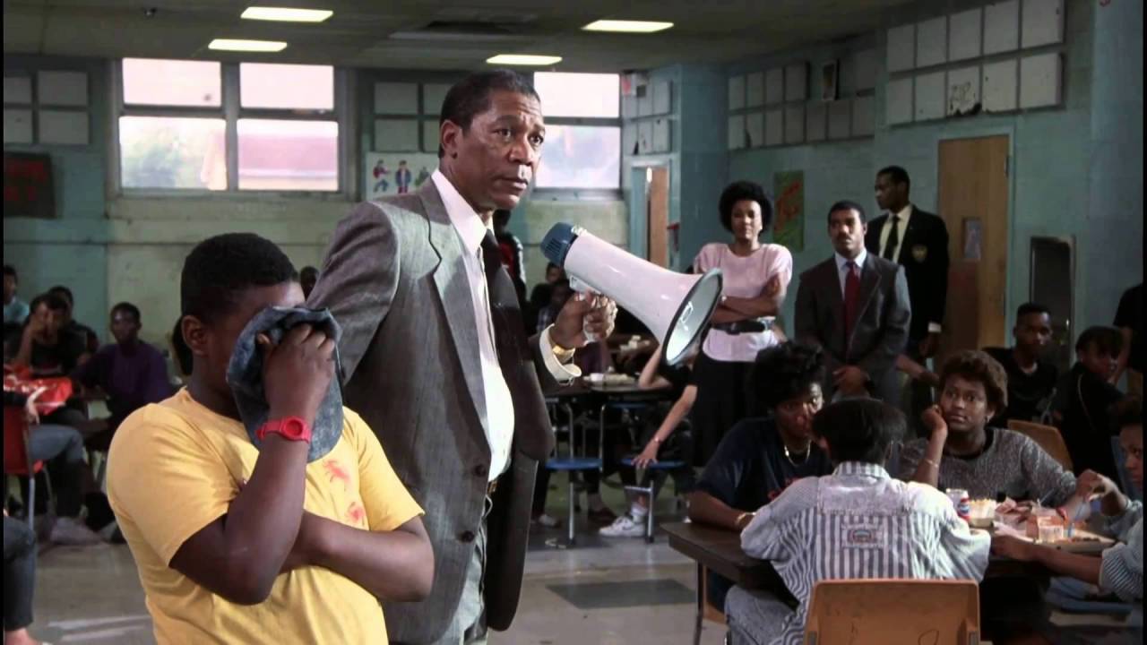 Nam diễn viên Morgan Freeman trong vai thầy giáo Joe Clark (bên trái)