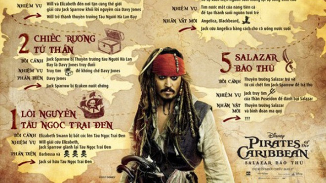 Kể từ lần đầu tiên xuất hiện trên màn ảnh lớn vào năm 2003 cho đến nay, Cướp biển vùng Caribbean đã trở thành một trong những thương hiệu “gà đẻ trứng vàng” của hãng Walt Disney. Sau 6 năm tạm nghỉ, trong mùa hè này, phần phim thứ 5 của loạt phim nổi tiếng sẽ ra mắt với tựa đề Pirates of the Caribbean: Salazar's Revenge (Tựa Việt: Cướp biển vùng Caribbean: Salazar báo thù). Vậy đâu là những lí do khiến những fan trung thành vẫn chờ đón phần kế tiếp này?