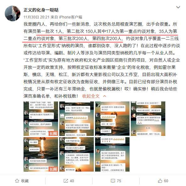 Mới đây, có một tài khoản tuyên bố mình là người trong ngành thuế cho biết việc 17 minh tinh này được nhắc đến là những đối tượng trọng điểm, mãi mãi không thể dừng lại ở như thế được. Sau đây là trích dẫn một số câu nói quan trọng của tài khoản này: