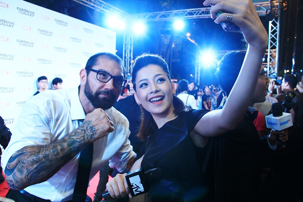 Cô chụp hình cùng Dave Bautista.