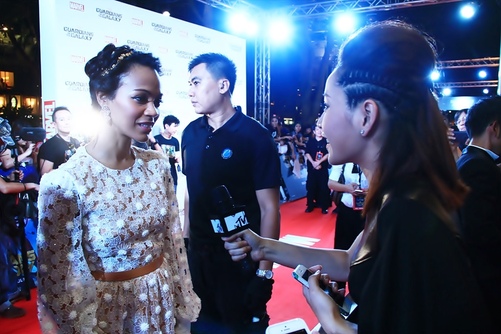 Chia sẻ về sự kiện trên, Chi Pu không giấu nổi sự xúc động: “Ngày đầu sang Singapore chuẩn bị cho họp báo ra mắt phim, trực tiếp phỏng vấn đạo diễn James Gunn, diễn viên Zoe Saldana, Dave Bautista, Chi vô cùng lo lắng, hồi hộp. Cảm giác khá run khi lần đầu tiếp xúc và đặt câu hỏi cho các sao Hollywood, nhưng sau khi vào phòng phỏng vấn, sự thân thiện và hài hước của họ khiến Chi thoải mái và giao tiếp tự nhiên”.