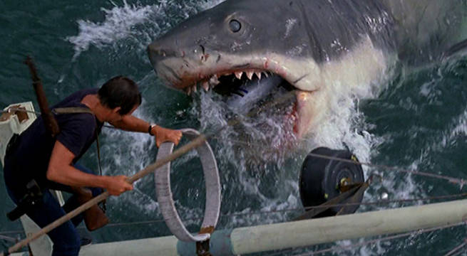 Sau hàng loạt những vụ tấn công của cá mập ở ngoài khơi biển New England đã khiến rất nhiều người thiệt mạng, một cảnh sát địa phương, một nhà nghiên cứu cá mập cùng với một ngư dân đã bắt tay thực hiện nhiệm vụ tiêu diệt con quái vật khổng lồ kia trước khi nó giết hại nhiều nạn nhân nữa. Sau cuộc điều tra, họ phát hiện con cá mập này to lớn hơn bất cứ con cá mập nào từng được ghi nhận trong lịch sử, khiến họ phải mất một thời gian dài mới có thể tiêu diệt được nó.