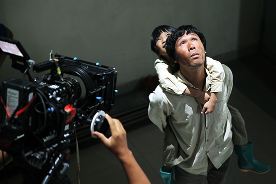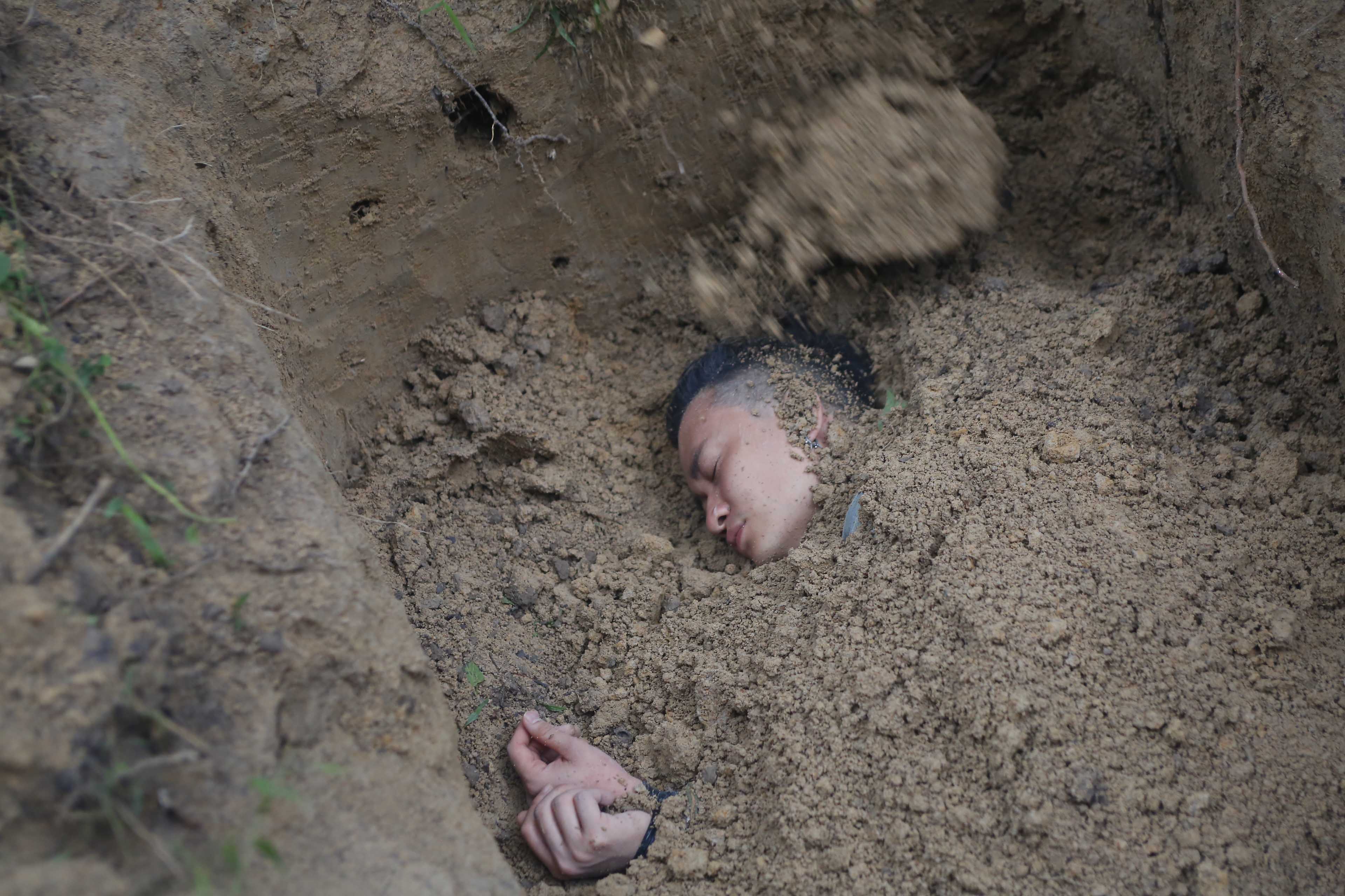 Lương Mạnh Hải thực hiện cảnh quay bị chôn sống.