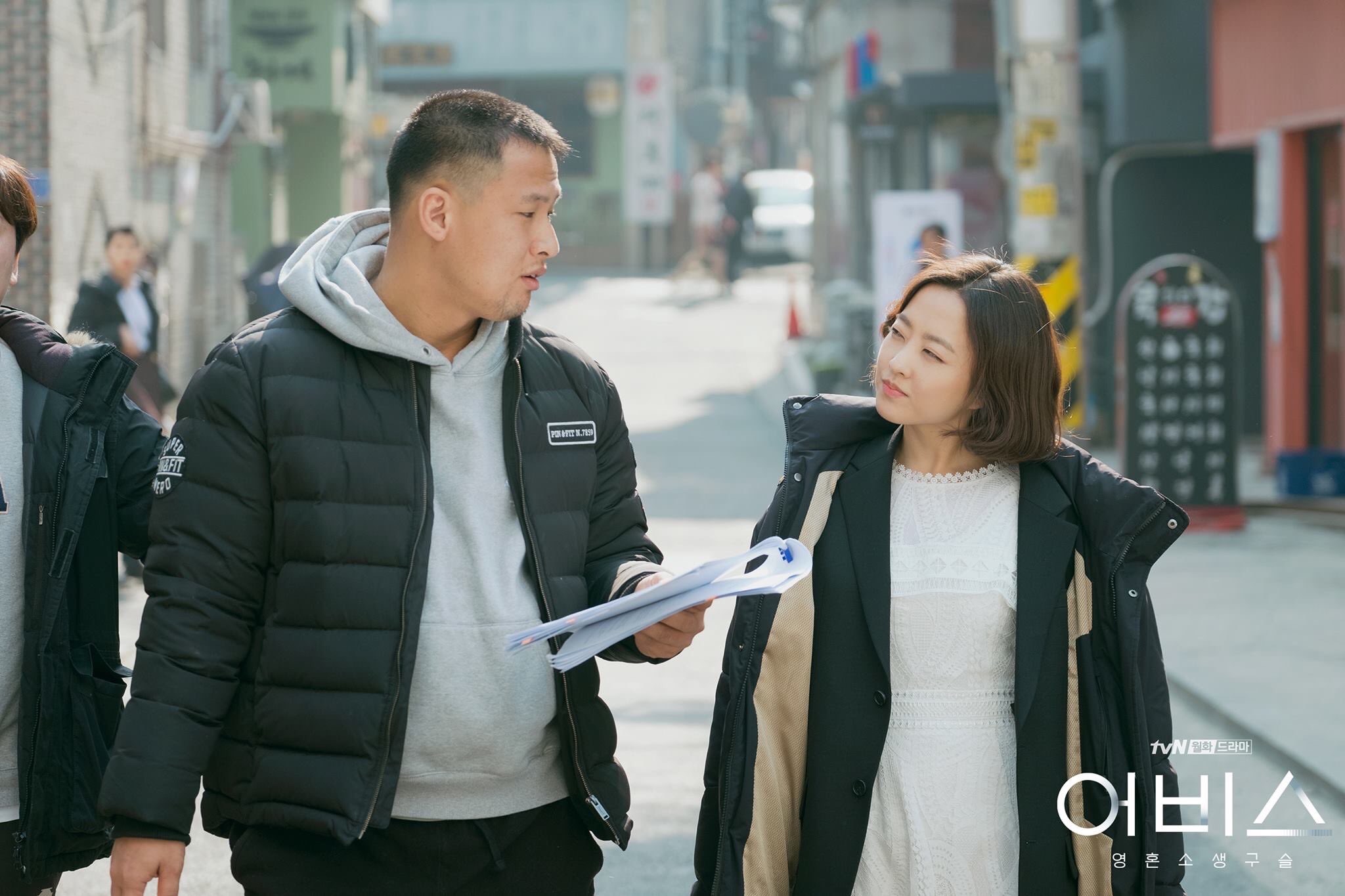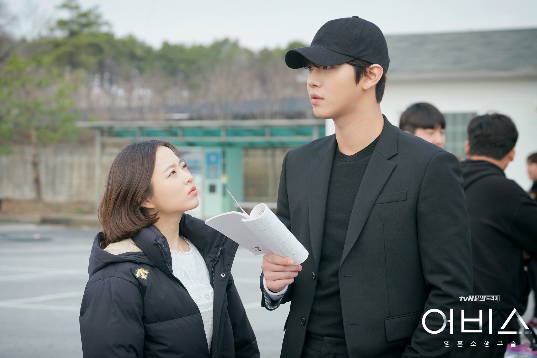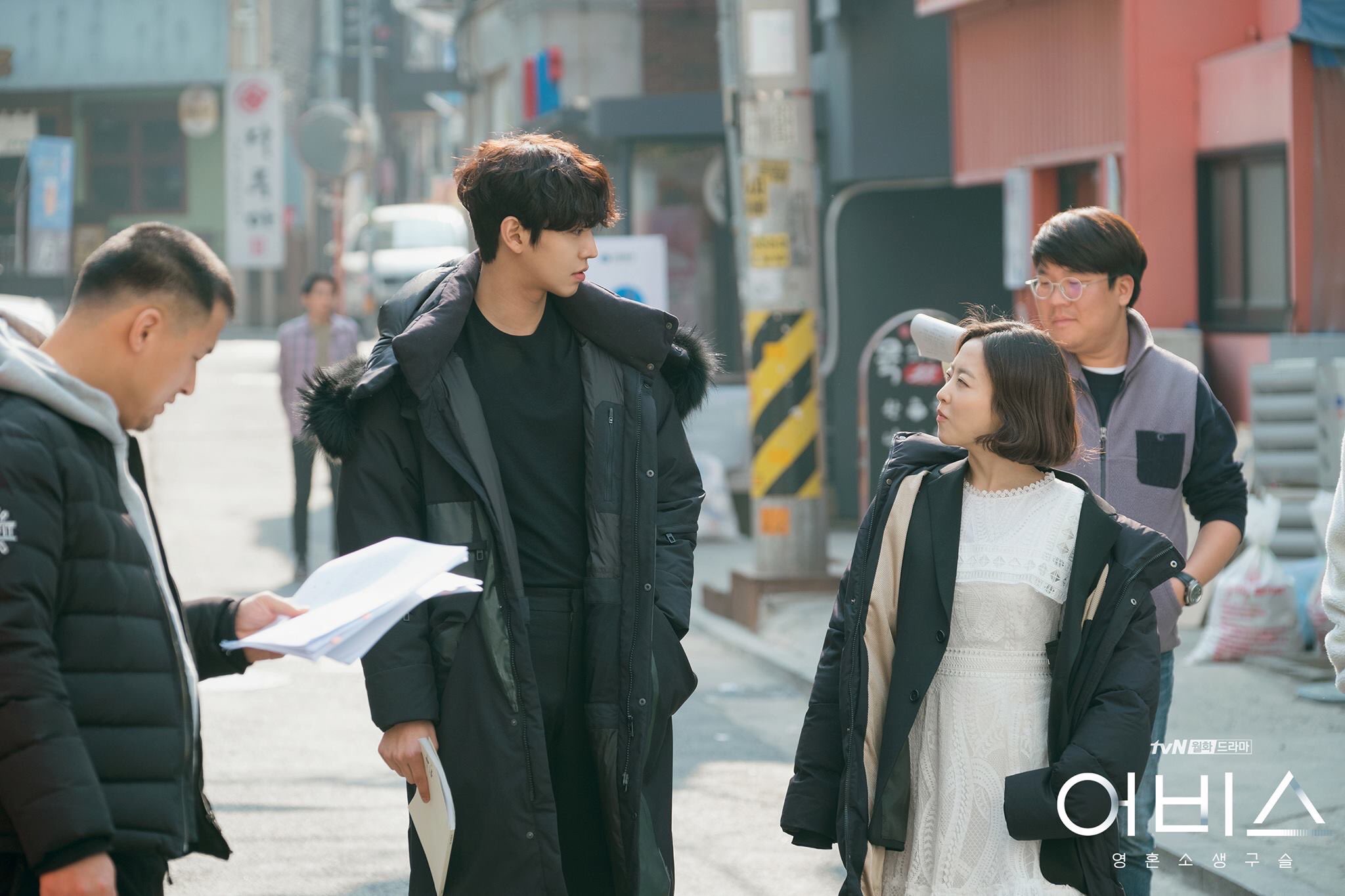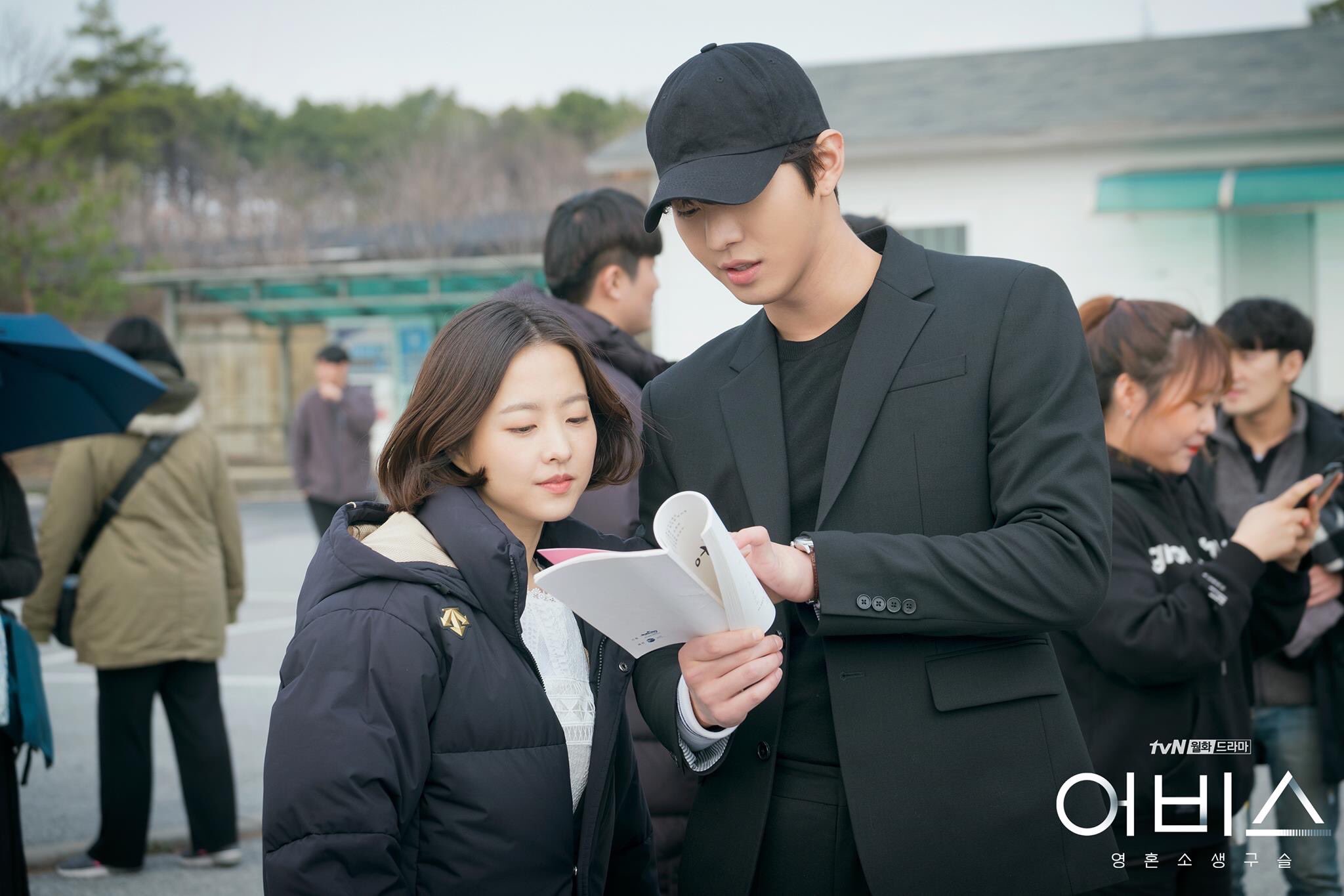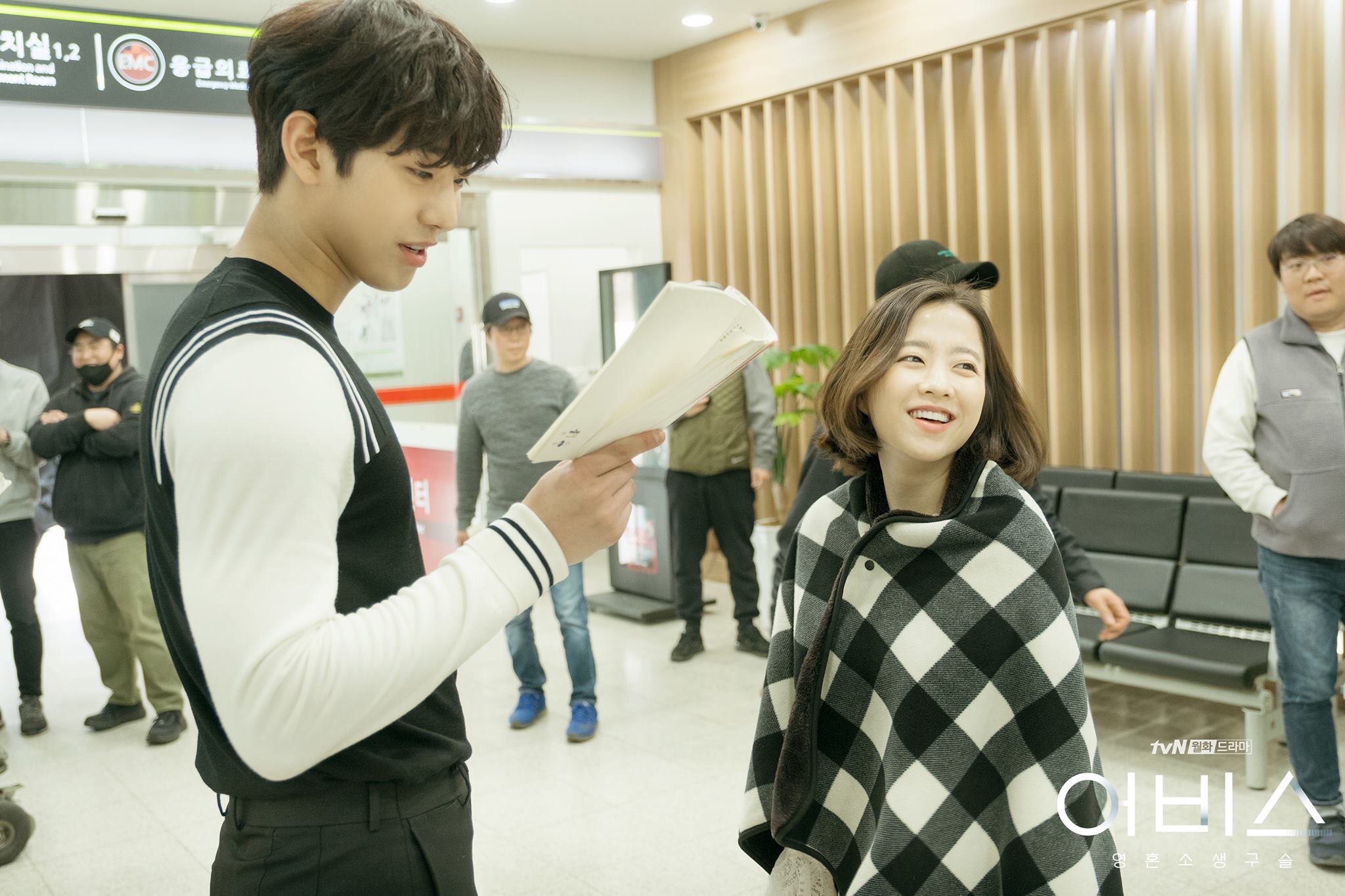 Trong ảnh hậu trường, cả Park Bo Young và Ahn Hyo Seop đều tập trung trao đổi, thảo luận kịch bản trước khi sẵn sàng quay phim. Chỉ cần đứng cạnh nhau, cặp chị em cũng đủ tạo ra bầu không khí tuyệt vời. Park Bo Young nhỏ bé, trong khi Ahn Hyo Seop cao lớn, cô nàng có thể dễ dàng nằm gọn trong vòng tay của anh.