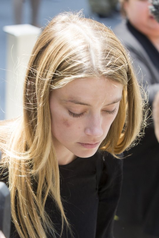 Heard diễn tả việc cô đã chống lại Depp vào tháng 3/2015. Sợ rằng anh ta sẽ đẩy em gái Whitney của mình xuống cầu thang trong căn nhà tại LA. Cô kể rằng: “Anh ta bắt đầu phá hủy tài sản cá nhân, kể cả đồ đạc của tôi trong tủ quần áo…Johnny lao vào đánh tôi còn Whitney thì đứng ra can ngăn. Johnny chuyển sự chú ý sang Whitney, đang đứng ở đầu cầu thang. Lo lắng cho sự an toàn của con bé, tôi đã đấm vào mặt Johnny để thu hút sự chú ý của anh ta. Đó cũng chính làm lần duy nhất tôi từng đánh Johnny.”