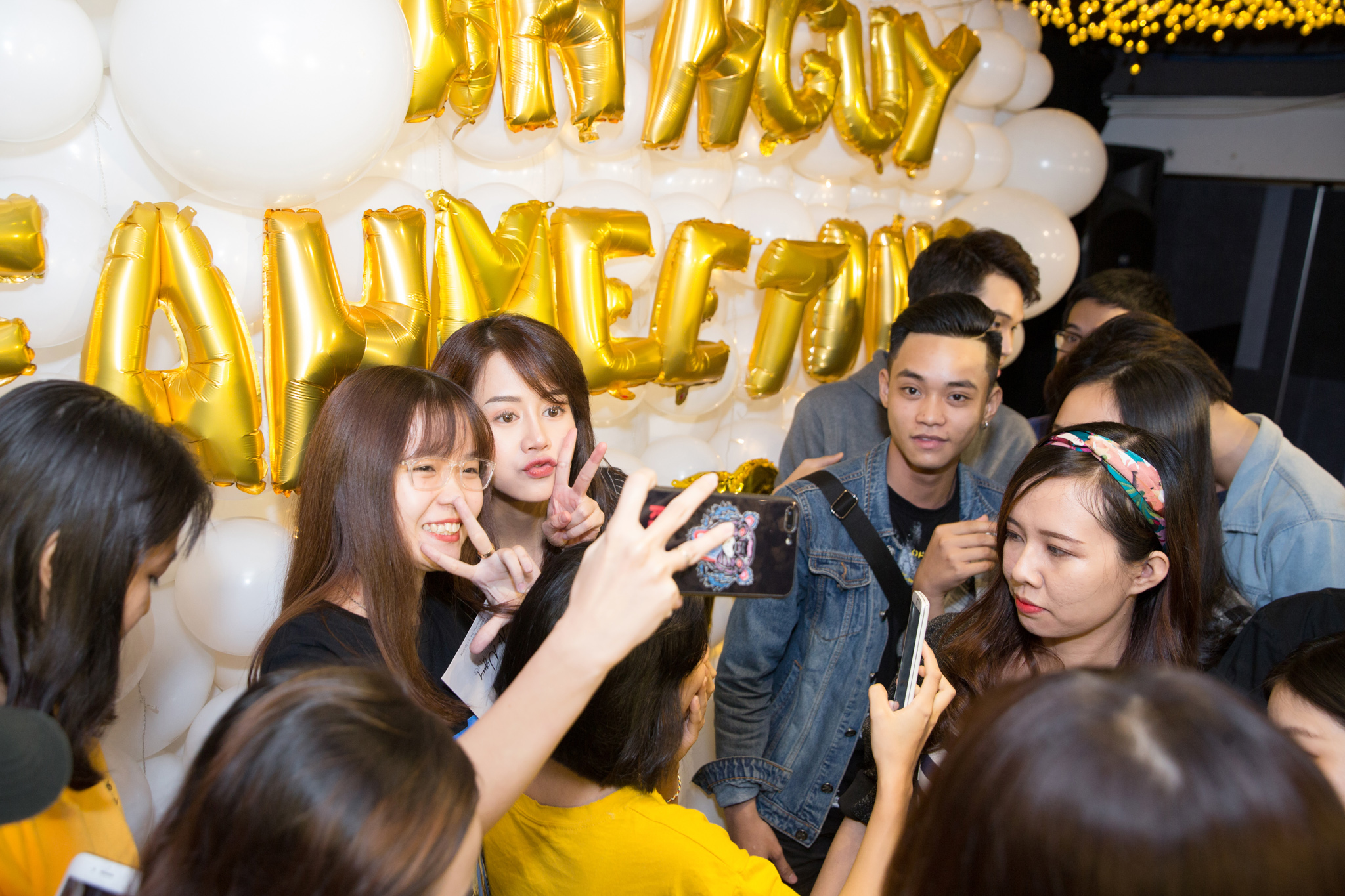 Bên cạnh sự có mặt của “con trai” An Nguy - bé Hữu Khang, buổi họp mặt còn có sự tham gia của Huyme, JVevermind và Justatee. Ba anh chàng nổi tiếng trên mạng xã hội khẳng định An Nguy “gài hàng” mình. Họ nhận được lời rủ rê đi ăn uống mừng sinh nhật An Nguy nhưng không ngờ địa điểm lại là fanmeeting của cô nàng. Chính vì thế, cả ba đã bắt phạt An Nguy ngay trên sân khấu fanmeeting để “trừng trị”.