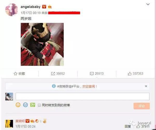 Trong khi đó, Huỳnh Hiểu Minh cũng đã cùng con trai Tiểu Hải Miên canh đúng lúc đồng hồ điểm 12 giờ đăng lên tấm hình cùng con trai vẽ tranh tặng cho Angelababy như một lời chúc mừng, trong bài viết Huỳnh Hiểu Minh cũng đã thay đổi cách xưng hô, gọi Angelababy là: “Người mẹ xinh đẹp“. Với việc thay đổi cách xưng hô này của Huỳnh Hiểu Minh, có cư dân mạng biểu thị: “Bài viết chúc mừng sinh nhật này sao giống với bài chúc mừng của Lưu Khải Uy tặng cho Dương Mịch đến vậy?“. Khi Lưu Khải Uy cũng thay đổi xưng hô từ Tiểu Mịch đổi thanh “Mẹ Gạo Nếp“, trong khi vào những năm trước đó Huỳnh Hiểu Minh đăng bài chúc mừng đều là những bài viết dài.