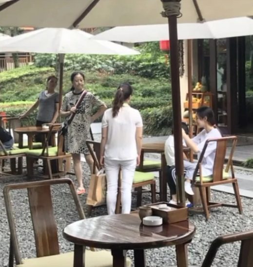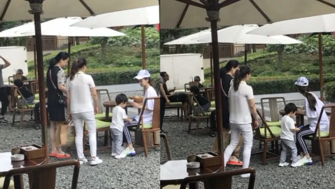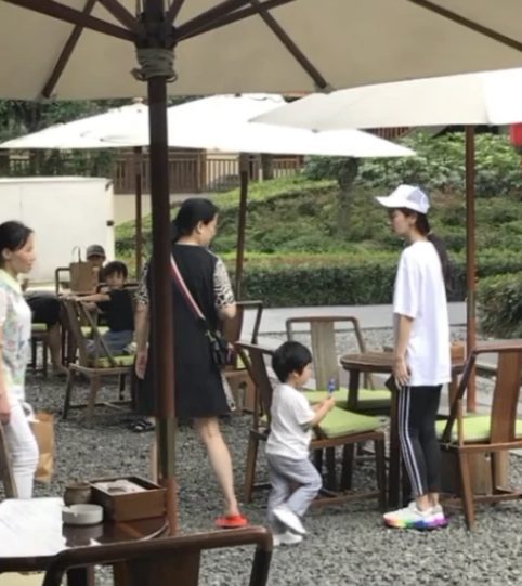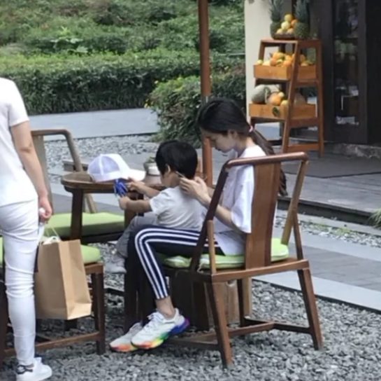 Angelababy mặc áo thun trắng đơn giản phối với quần thể thao dài, tóc dài buộc ngẫu nhiên. Hình ảnh này khiến công chúng liên tưởng đến các bà mẹ khác chăm con. Gần đây Angelababy không có phim mới nào bấm máy nhưng vẫn tham gia vài chương trình tống nghệ và sự kiện.