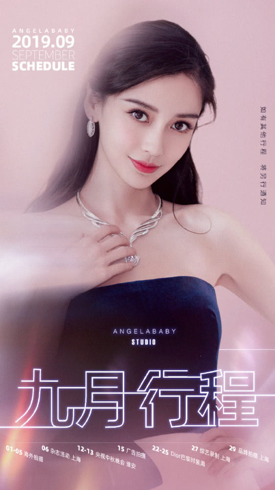 Trong hai năm nay, tài nguyên của Angelababy ngày càng tốt. Dù ở thời điểm không có phim đóng nhưng lịch trình công việc khác đã sắp xếp, chuẩn bị 15 ngày làm việc liên tục (con số này đã rất cao). Hai ngày nữa cô sẽ bay qua Paris để tham gia tuần lễ thời trang nhưng vẫn làm hết trách nhiệm của một người mẹ.