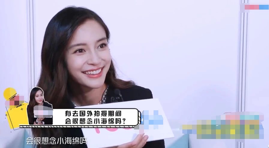 Ngày hôm nay, một đoạn phỏng vấn của Angelababy cũng bị tiết lộ. Khi ký giả hỏi: “Trong thời gian ra nước ngoài có nhớ Tiểu Hải Miên nhiều không?” thì nàng tiểu hoa cho biết cô dẫn con trai đi cùng, vì lần đó gia đình nữ diễn viên nói cũng muốn đi du lịch, nên sẵn tiện dẫn theo người nhà và con trai theo. Angelababy lúc nhắc đến Tiểu Hải Miên vô cùng vui vẻ, dường như không nói mãi cùng không hết được.
