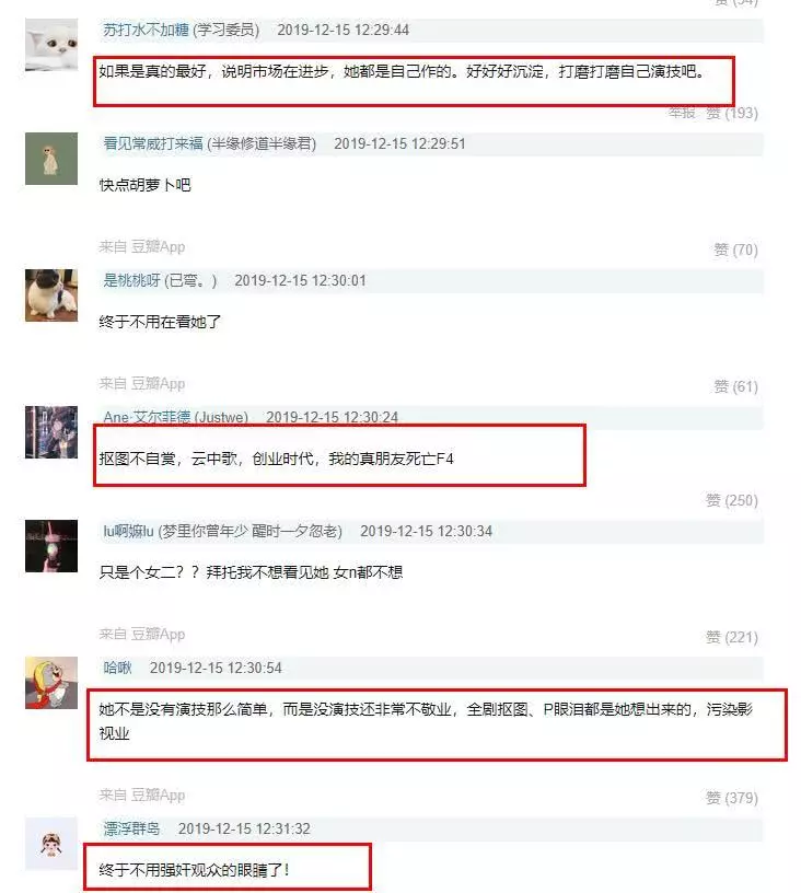 Thậm chí, có ý kiến đưa ra lời khuyên cho Angelababy rằng: “Nếu như đang là thời kỳ mùa đông của ngành phim ảnh, cô lại đang thất nghiệp, thế thì dùng thời gian này mà tranh thủ trau dồi, rèn luyện khả năng diễn xuất đi! Có danh tiếng, có tài chính chẳng lẽ không mời được người phụ đạo về diễn xuất? Còn không thì nên quay về làm người mẫu hay tham gia gameshow, đừng nên đóng phim, tra tấn khán giả phải xem nữa. Chỉ vì cô mà người xem phải từ bỏ nguyên cả bộ phim, khiến công sức những người còn lại đổ sông đổ biển”.