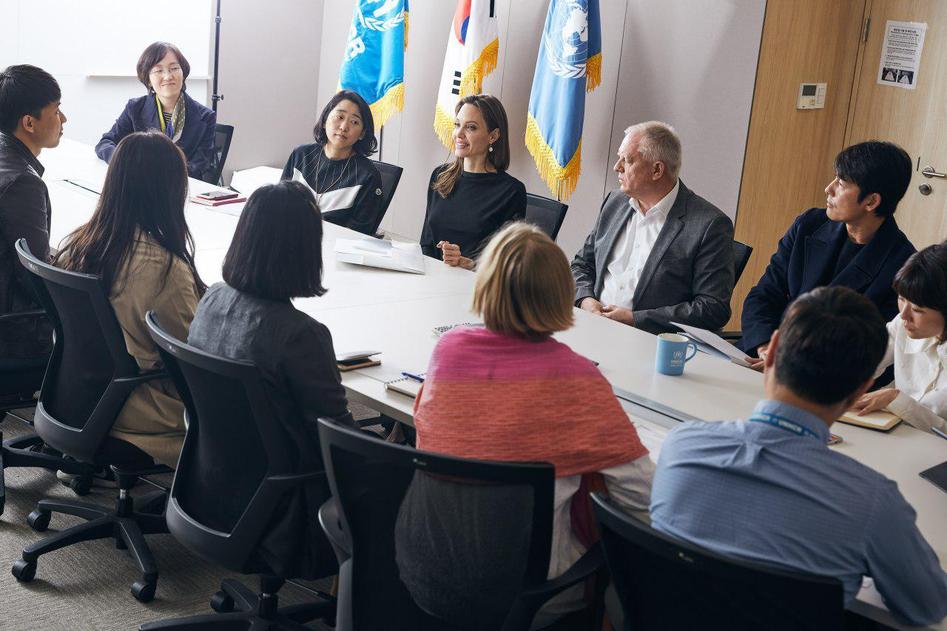 Vào ngày 03/11 vừa qua, nữ minh tinh hàng đầu thế giới Angelina Jolie đã đến Hàn Quốc với tư cách là Đại sứ thiện chí người Mỹ của Cao ủy Liên Hiệp Quốc về người tị nạn (UNHCR) và cô đã có cuộc gặp gỡ với nam diễn viên điển trai Jung Woo Sung (Đại sứ thiện chí Hàn Quốc) tại văn phòng UNHCR Seoul.
