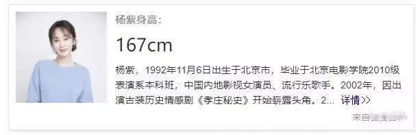 Căn cứ theo thông tin được đăng tải về Dương Tử, phía nữ diễn viên công khai chiều cao của cô là 1m67. Số liệu này có phải thật hay không tạm thời không bàn đến. Đa số, công ty quản lý đều khai khống chiều cao của nghệ sỹ, thực tế họ đều thấp hơn so với số liệu được đưa ra.