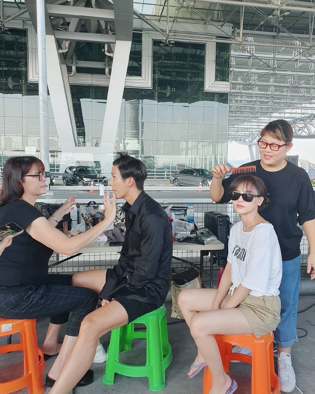 Cặp đôi vui vẻ nơi phim trường