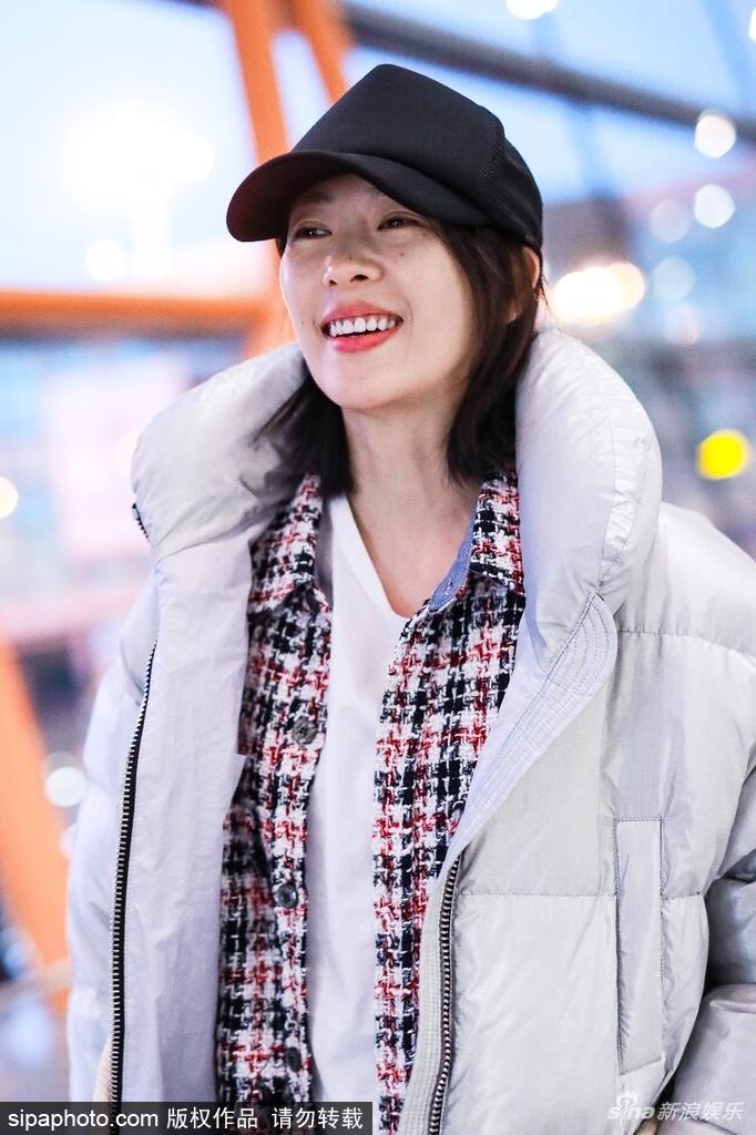 Trong khi đó, Đồng Dao ở một lúc khác cũng có mặt tại sân bay. Ngay khi nhìn thấy ống kính, nữ diễn viên đã nở nụ cười ngọt ngào, tạo cảm giác thân thiện, không có khoảng cách giữa ngôi sao - người hâm mộ. Cô diện áo khoác màu bạc để thể hiện cá tính và gout thời trang sân bay của mình.