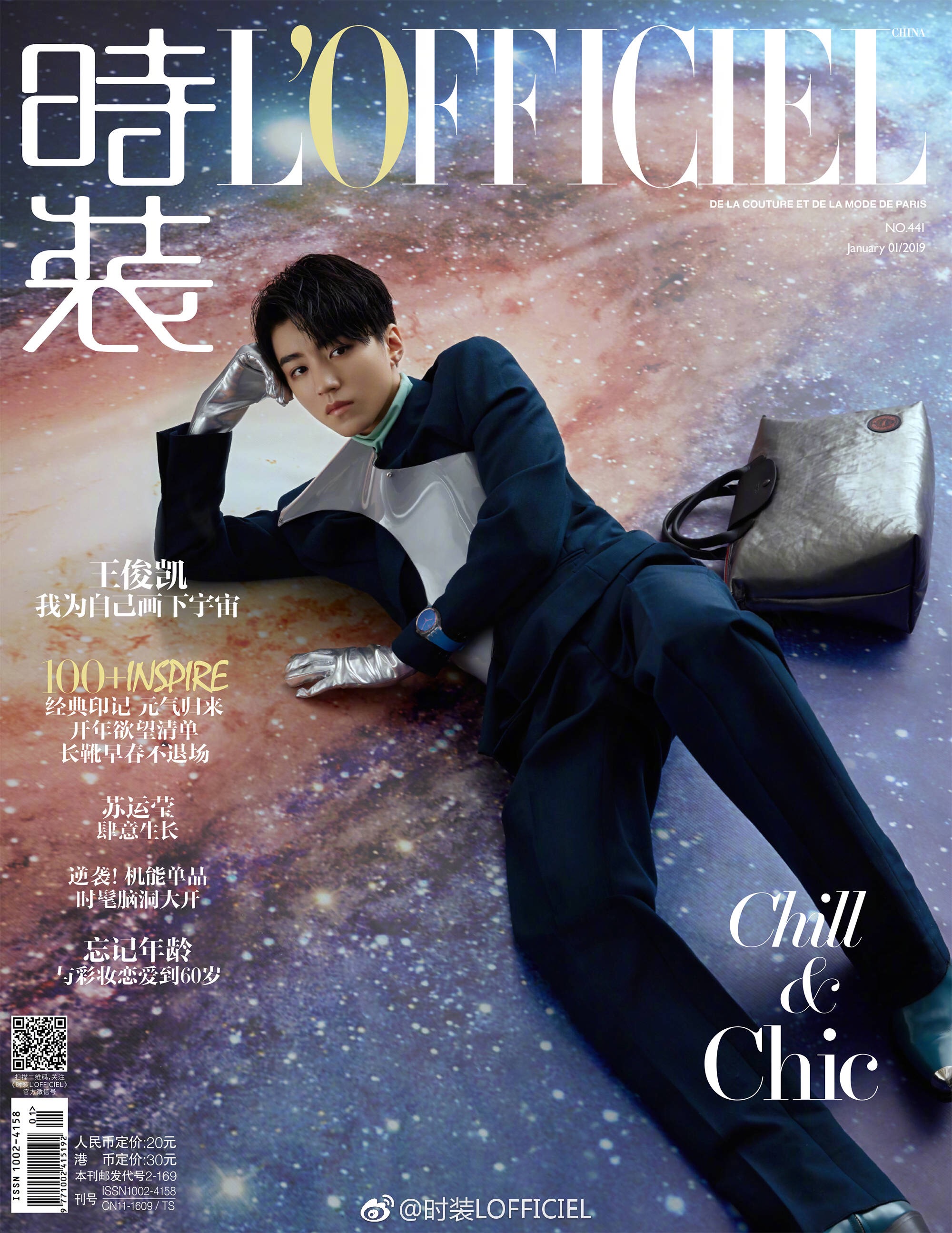 Mới đây, loạt ảnh tạp chí của trưởng nhóm TFBOYS - Vương Tuấn Khải trên trang bìa tạp chí thời trang L'OFFICIEL số ra tháng Giêng năm 2019 đã được studio đăng tải lên mạng xã hội Weibo kèm theo dòng chú thích: “Cậu ấy vẽ ra vũ trụ của chính mình, kề vai sát cánh bên cạnh các bạn”.