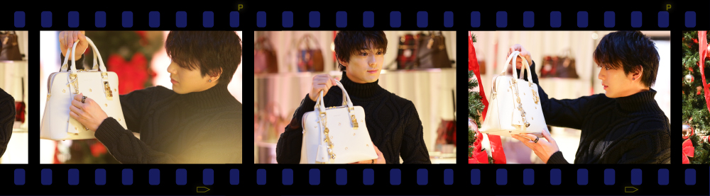 Trong bầu không khí ấm áp chan hòa ánh sáng huyền ảo của đêm giáng sinh, Mackenyu đã bước ra từ sau cây thông Noel với chiếc áo len và bông tai đồng màu đen quyến rũ. Sau khi ngắm nhìn những chiếc túi xách đẹp đẽ được bày trên kệ và quanh cây thông, Mackenyu đã cẩn thận nhấc lên một chiếc có màu kem sữa được trang trí những bông hoa nhỏ màu vàng đầy nữ tính thanh lịch. Chiếc túi xinh đẹp mềm mại này có tên gọi là “Christmas bijou Samantha Lady Mein” với giá niêm yết 34.560 yên (khoảng 7,2 triệu đồng). Theo thống kê trên website đặt hàng trực tuyến của hãng, chiếc túi này hiện nay đã “cháy hàng”.
