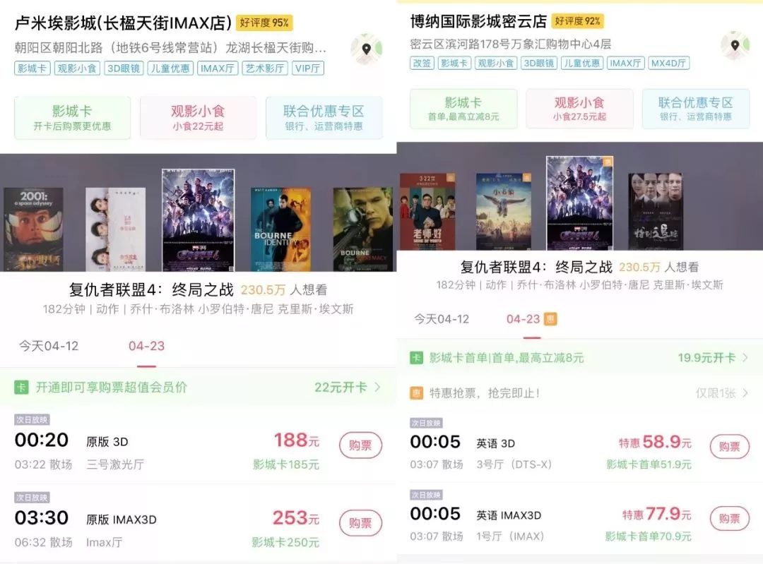 Các rạp chiếu định dạng IMAX nhanh chóng được bán hết, những hàng ghế bên góc ngoài hay cận màn hình đều đã “bóc hơi” chưa đầy 20 phút. Giá vé của định dạng này có nhiều cấp bậc khác nhau, dao động từ 70 đến 400 NDT (tương đương 250 ngàn đồng đến hơn 1,4 triệu đồng) - là giá vé chính tại rạp chiếu chưa qua các hình thức truyền tay bán lại hay chợ đen. Đây được xem là mức giá “chát” nhất từ trước đến giờ tại các rạp Trung Quốc nhưng vẫn không có vé để mà mua.