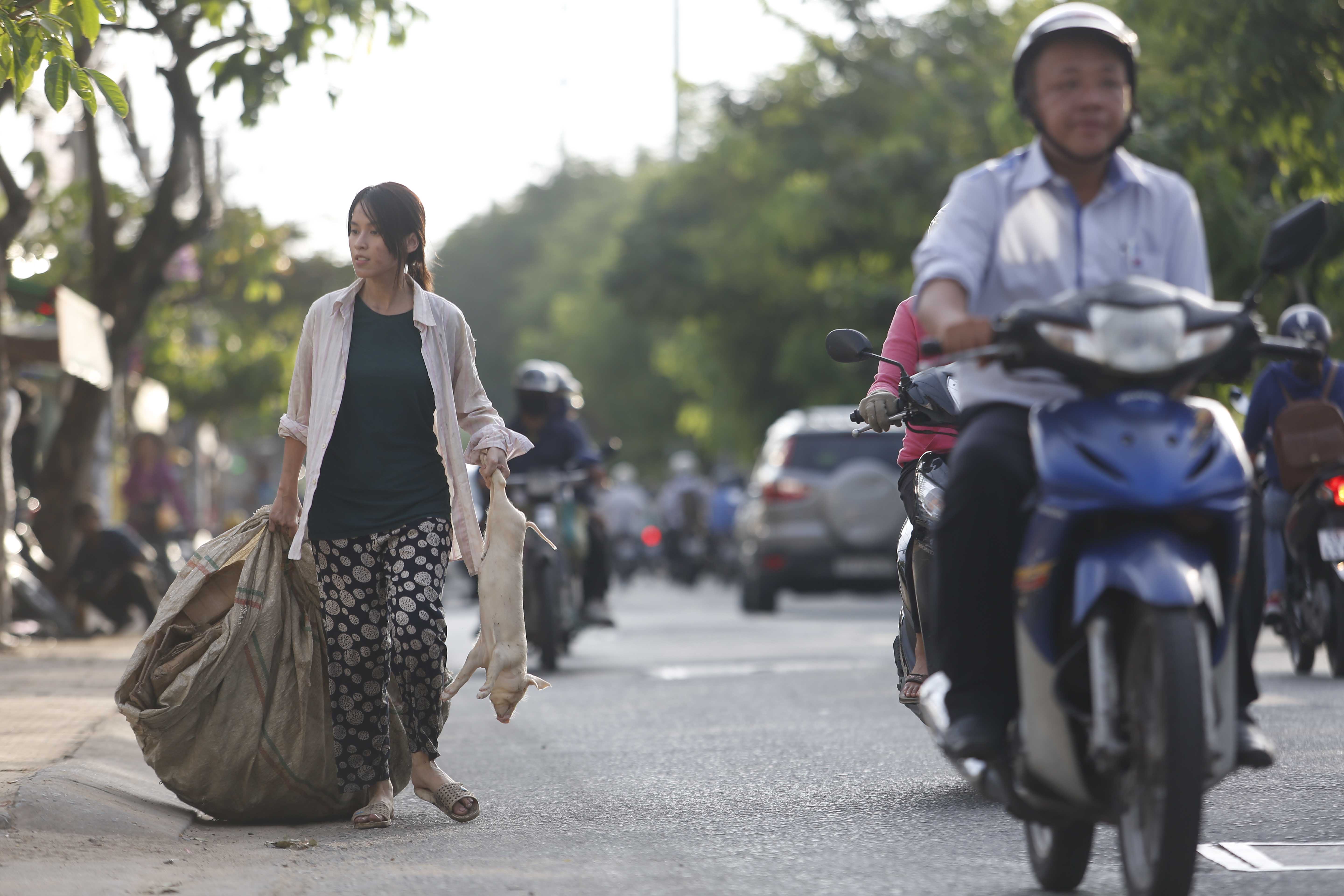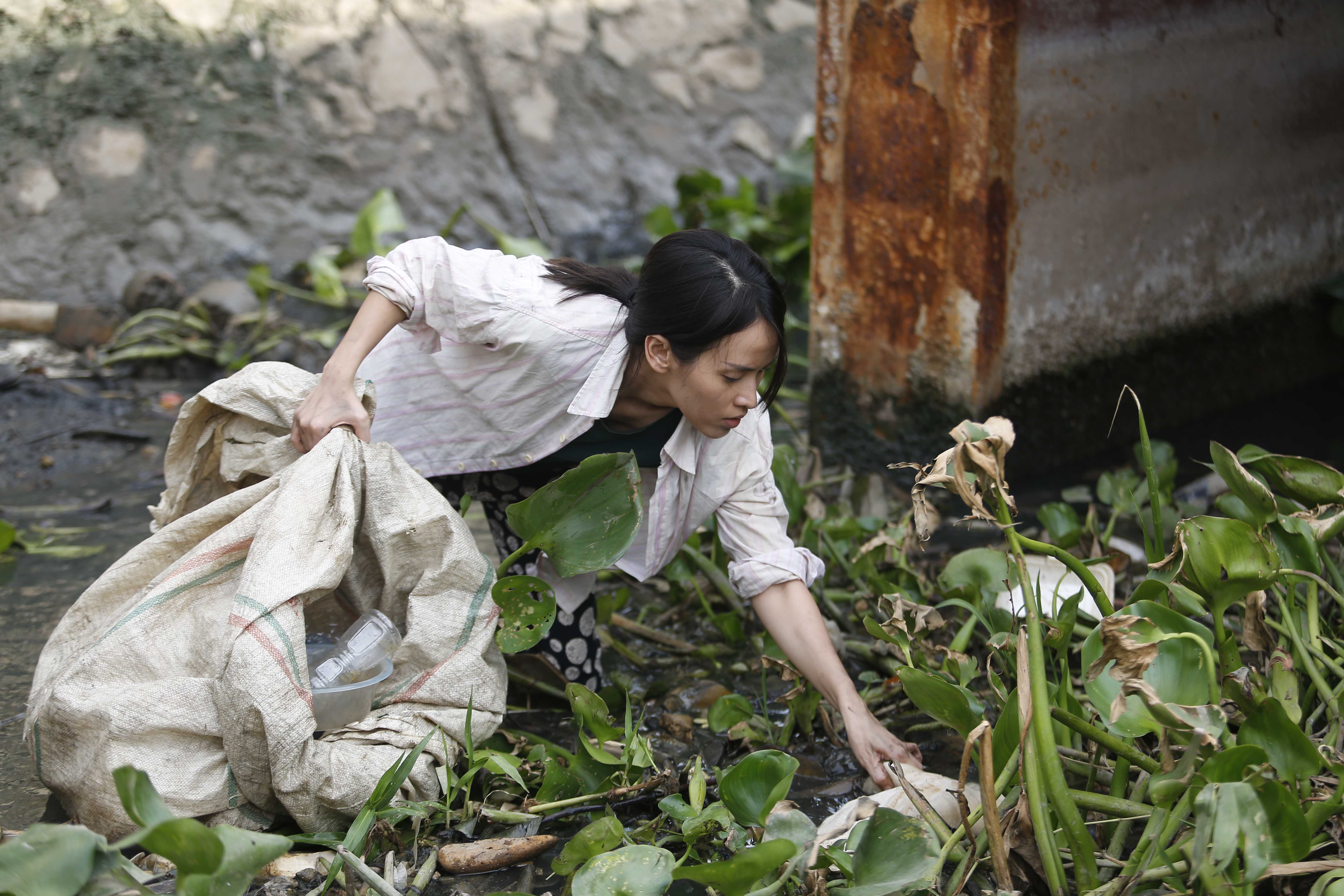 Không còn vẻ ngoài xinh đẹp tiểu thư, Tú Vi thực sự thay đổi khi vào vai cô “đồng nát” lặn hup dưới cống để tìm đồ ve chai.