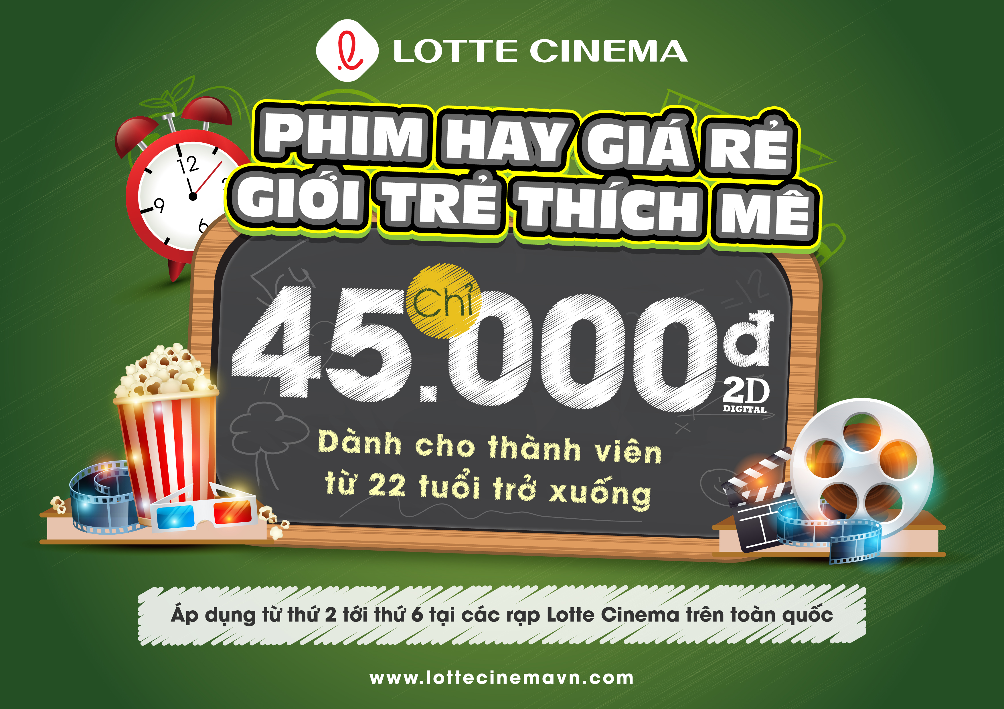 Phim hay giá rẻ giới trẻ thích mê hiện đang chạy trên tất cả các hệ thống của Lotte Cinema với giá vé chỉ 45k.