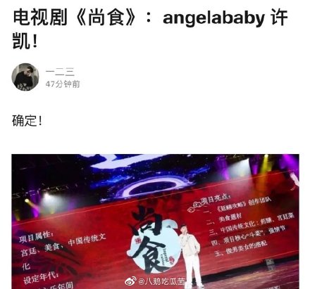 Mới đây, trên mạng xuất hiện tin Hứa Khải và Angelababy sẽ hợp tác trong phim truyền hình mới của Vu Chính với đề tài ẩm thực cùng với sự trưởng thành của nữ chính làm chủ, lấy tên là Thượng thực. Thế nhưng, điều khán giả quan tâm nhất chính là trước đó Vu Chính từng lên tiếng cho biết tác phẩm này có khả năng sẽ là tác phẩm hợp tác tiếp theo của Hứa Khải và Bạch Lộc.