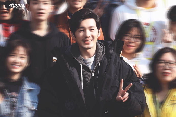 Nam chính Bạch Vũ mặc áo khoác độn bông màu đen vào ngày khởi quay phim Fairyland Lovers (Chốn Bồng Lai). Anh chàng điển trai này luôn làm cho mọi người cảm thấy hấp dẫn và lôi cuốn.