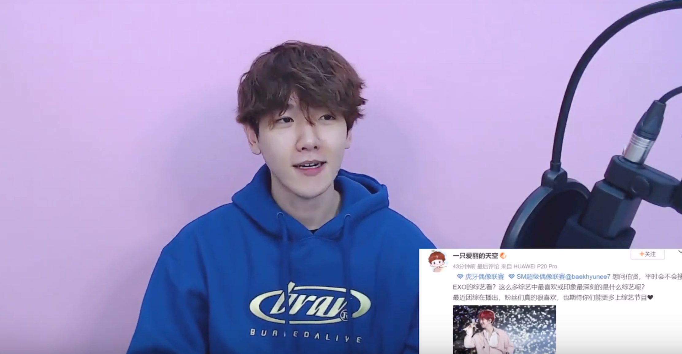 Giống như trò chơi được phát trên SM Super Idol League, Baekhyun đã lấy một số hình chụp từ máy polaroids trong khi phát sóng trực tiếp và những bức ảnh này sẽ được tặng cho những người chiến thắng may mắn sau đó. Baekhyun ngồi xổm trên ghế và chuẩn bị chụp ảnh với bộ dạng mím môi, anh bắt đầu chú ý đến xung quanh và cười. Thay vì chụp ảnh, anh bắt đầu dùng ngón tay để đếm số người trước mặt, “Có 11 người trước mặt tôi. Tôi đang chụp ảnh tự sướng và có rất nhiều cặp mắt đang nhìn tôi. .. “