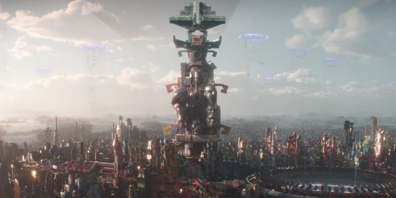 Tại hành tinh Sakaar, người khổng lồ xanh Hulk được ở trong một ngọn tháp cao dành riêng cho nhà vô địch của chủ nhân Grandmaster. Bên ngoài ngọn tháp này được trang trí với những gương mặt khổng lồ, với mặt của Hulk đang trong quá trình hoàn thiện nằm ở trên cùng.