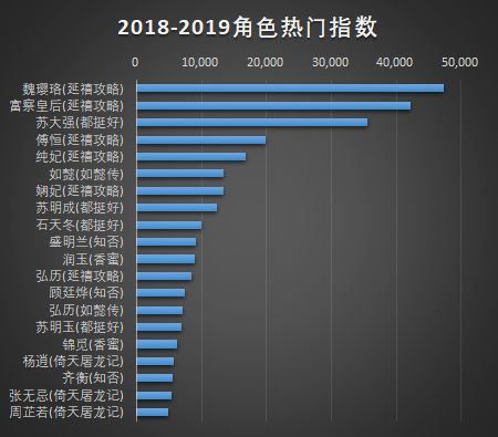 Từ bảng xếp hạng những chỉ số những nhân vật nổi tiếng năm 2018 - 2019 có thể thấy, những nhân vật nổi tiếng hai năm gần đây lần lượt do Diên Hi công lược, Đều rất tốt, Hậu cung Như Ý truyện, Minh Lan truyện, Hương mật tựa khói sương, Tân Ỷ thiên đồ long ký - 6 tác phẩm này chiếm đóng. Trong đó top 5 lần lượt bị Diên Hi công lược chiếm 4 vị trí, nhân vật Tô Đại Cường của phim Đều rất tốt chiếm vị trí thứ 3. Trong 20 nhân vật nổi tiếng này thì Diên Hi công lược chiếm 6 vị trí, Đều rất tốt chiếm 4 vị trí, Minh Lan truyện chiếm 3 vị trí, Hương mật tựa khói sương chiếm 2 vị trí và Hậu cung Như Ý truyện chiếm 2 vị trí.