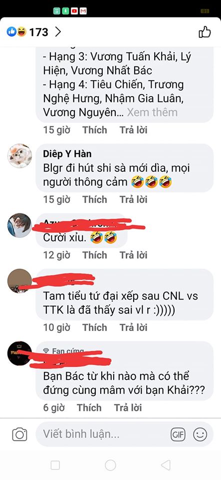 Với bảng sao nam, fan cho là việc Thái Từ Khôn lên đầu là đưa anh chàng ra “đầu sóng ngọn gió”. Vị trí của ba thành viên TFBoys (tam tiểu) là Dịch Dương Thiên Tỉ, Vương Tuấn Khải, Vương Nguyên cũng không nhận được sự tán đồng trong cách sắp xếp. Trong khi đó, việc diễn viên theo phái thực lực là Chu Nhất Long có mặt trong bảng xếp hạng, được cho là không đúng.