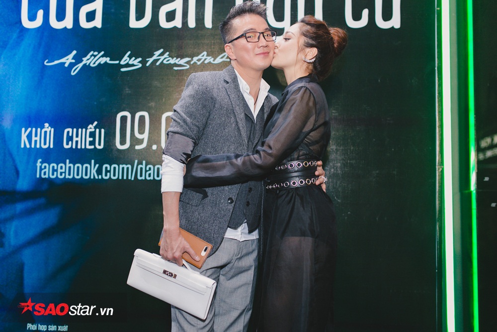 Bảo Anh diện váy sexy đến chúc mừng đoàn làm phim, cô ôm hôn đàn anh Đàm Vĩnh Hưng thân thiết.