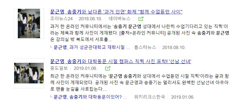 Vào khoảng giữa năm 2018 và đầu năm 2019, một số tờ báo của Hàn Quốc đăng tải hình ảnh cũng như một số thông tin liên quan đến mối quan hệ giữa “Em gái quốc dân” Moon Geun Young và Song Joong Ki trong quá khứ. Được biết, vào khoảng giữa năm 2012, ảnh chụp lén thời sinh viên của cả hai ngôi sao “gây bão”, được chia sẻ tràn ngập trên các diễn đàn mạng và trở thành tâm điểm của mọi sự chú ý.