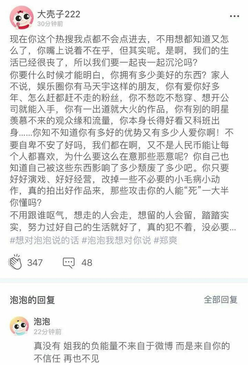 Tuy nhiên Trịnh Sảng đã một lần nữa đạp đổ sự tưởng tượng của mọi người. Ngày 8/7, Trịnh Sảng đã ở trên Weibo đăng bài: “Có nhiều người nói rating tuột giảm, tôi muốn nói rằng nhân sinh của tôi không chỉ có phim truyền hình, nhân sinh của bạn tùy ý”. Ý của Trịnh Sảng ở đây là cô không để ý, hay có thể nói là không để ý để việc rating phim có giảm hay không.