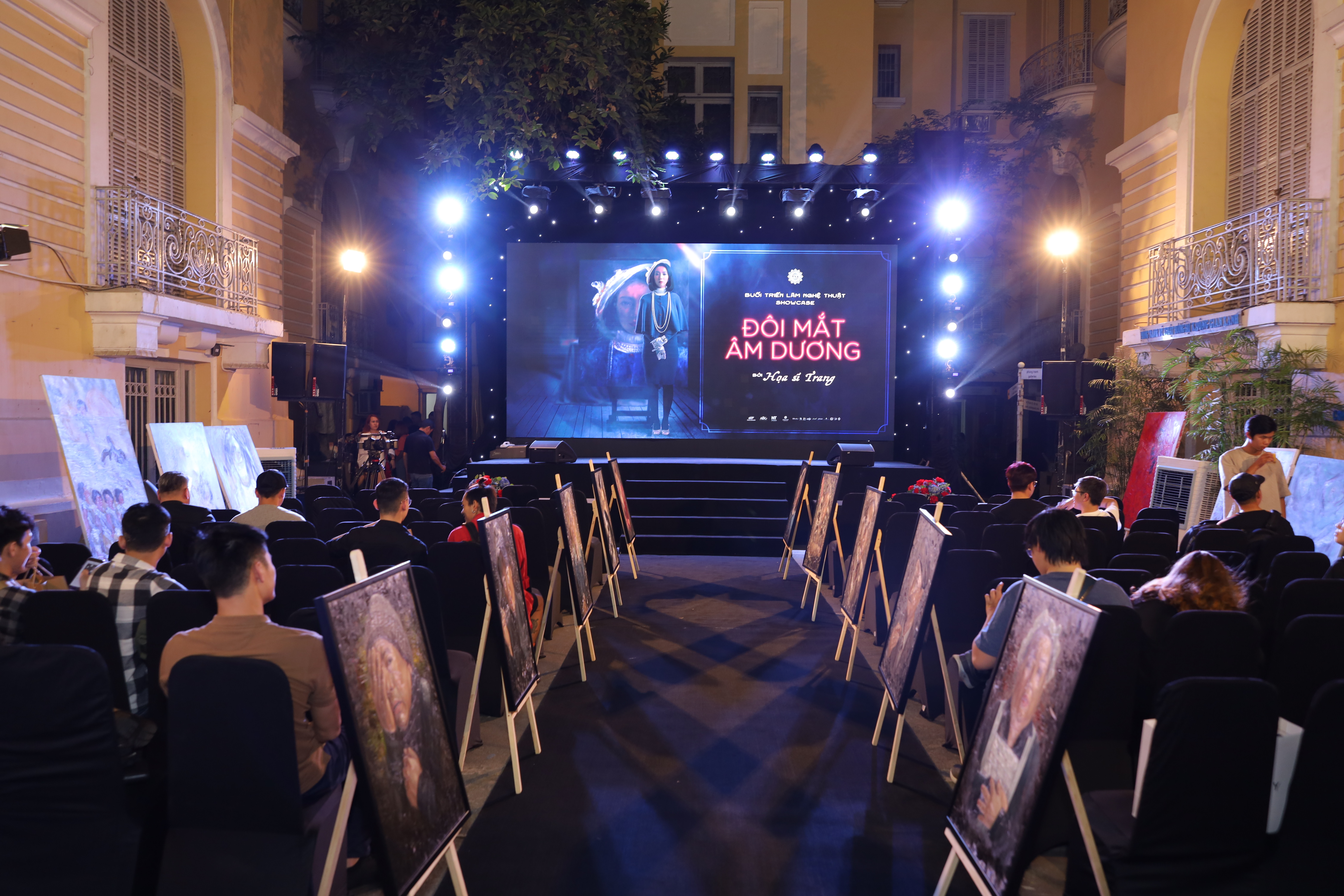 Hội trường buổi ra mắt được thiết kế với những bức tranh sơn dầu.
