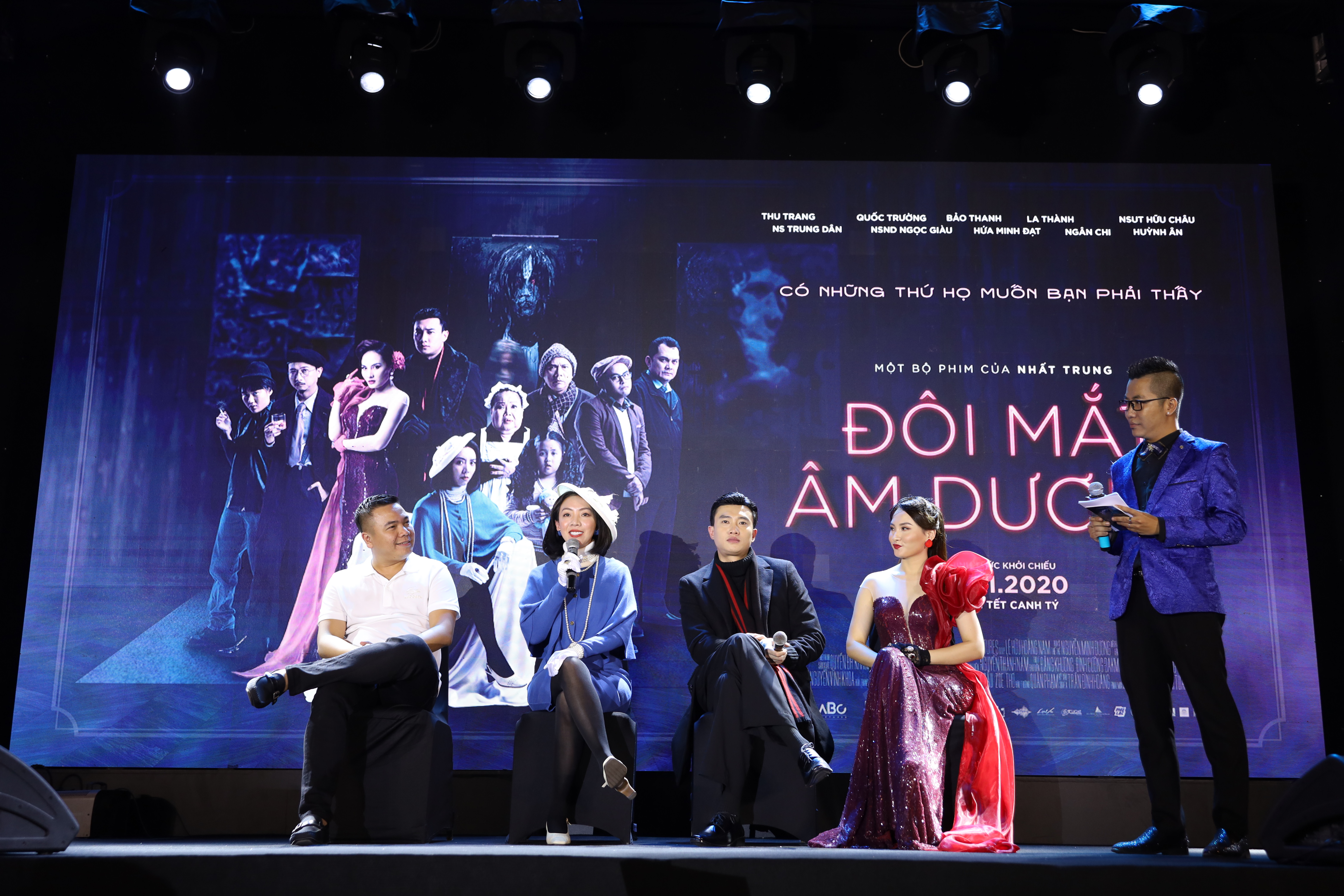 Tối 7/1/2020, buổi giới thiệu chính thức dự án phim Đôi mắt âm dương diễn ra tại Bảo tàng Mỹ thuật TP. Hồ Chí Minh với sự góp mặt của dàn diễn viên chính đình đám từ bắc chí nam gồm Thu Trang, Quốc Trường, Bảo Thanh, La Thành,… Đặc biệt, không gian họp báo được trang hoàng như phòng tranh thực thụ với những tác phẩm sơn dầu khiến khán giả không khỏi tò mò, thích thú.