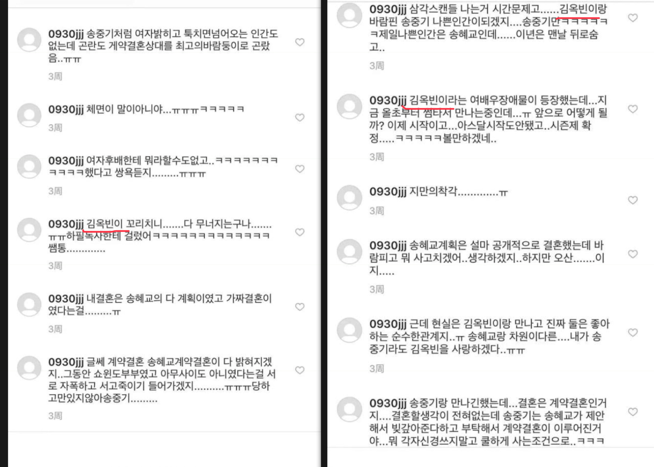 Hơn nữa, ảnh chụp màn hình duy chỉ có một tài khoản và bình luận cùng một khung giờ thời gian, kiểu cách viết hoàn toàn tương đồng. Đây chắn chắn là kịch bản tự biên tự diễn, ngụy tạo điều sai chính nhằm làm lớn chuyện về vợ chồng Song Joong Ki, Song Hye Kyo và cả “cô dâu Hà Nội” Kim Ok Bin. Sau khi ngụy tạo bằng chứng giả, bài báo thậm chí còn “khóc mướn” và cho rằng những bình luận đó không đúng sự thật.