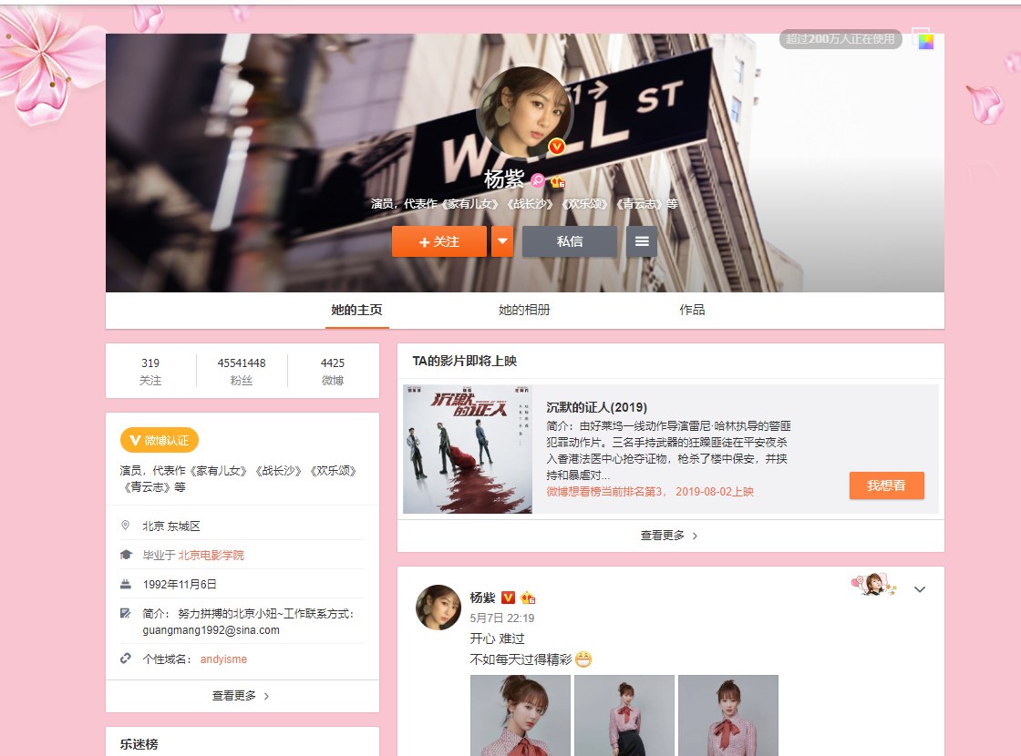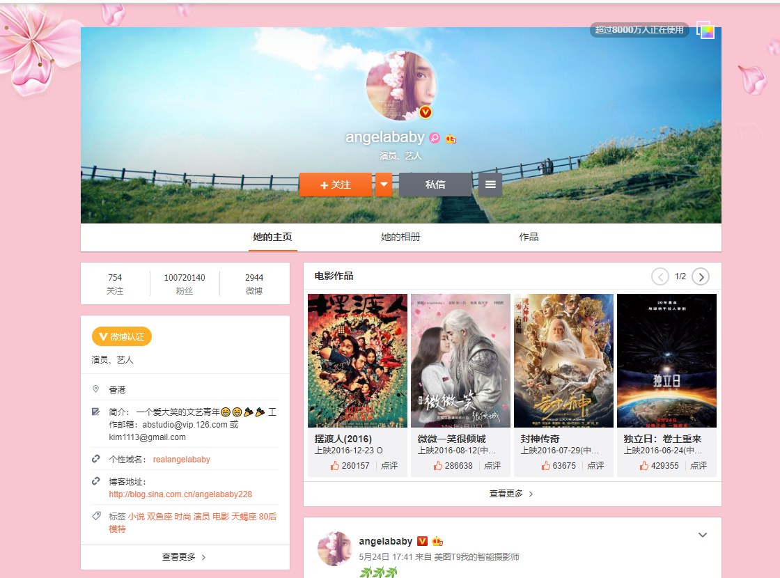 Đầu năm 2019, các fan của Dương Mịch và Angelababy đã ăn mừng thần tượng đều cán mốc 100 triệu lượt người hâm mộ nhấn nút Theo dõi trên Weibo chính chủ. Đây là thành quả của những nỗ lực trong lĩnh vực nghệ thuật cũng như vượt qua scandal ly hôn, chia tay… Thế nhưng, bài báo vẫn đang “cập nhật muộn” khi đưa tin lượng fan của Angelababy hơn 83,4 triệu người còn Dương Mịch “kém cạnh” với 75,4 triệu người.